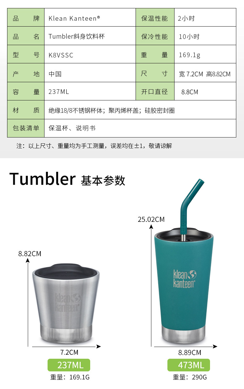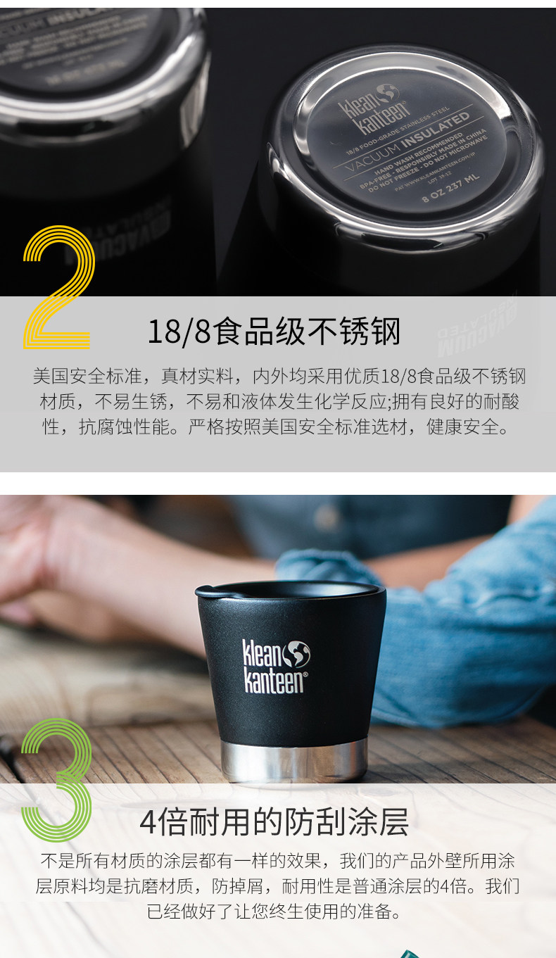Американская кофейная чашка Klean Kanteen. Семейная семейная фруктовая фруктовая чашка из нержавеющей стали Портативная кк -изоляция чашка