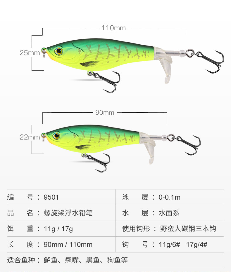 Король Луя Пьяный поверхностный трактор с пропеллером плавающей водяной карандаш далеко бросает фальшивую приманку из тихливого рта Луя