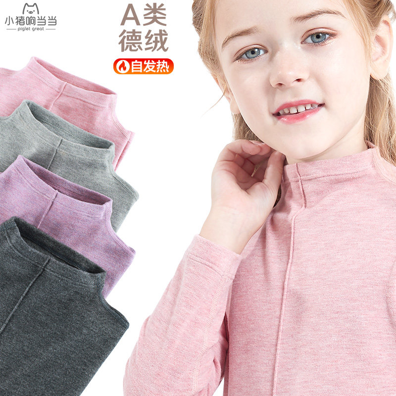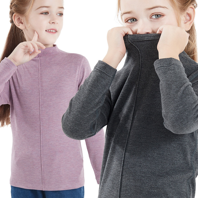 Детское базовое термобелье для мальчиков, приятный телу бархатный лонгслив, высокий воротник, подходит для подростков