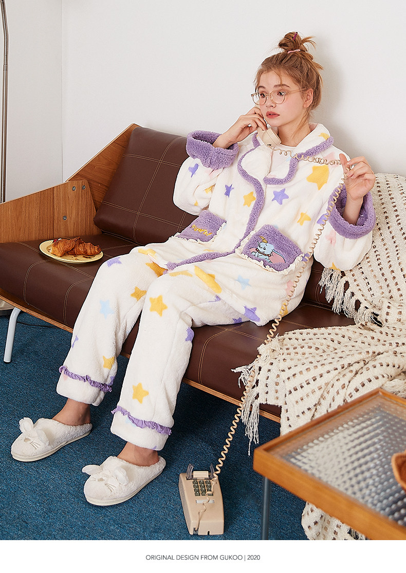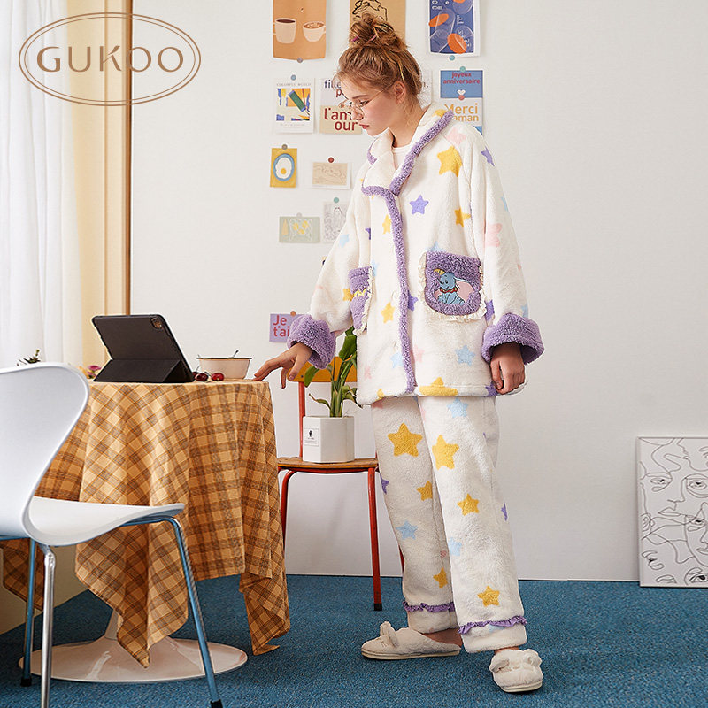 Gukoo/果壳 Дисней, демисезонная коралловая бархатная пижама, удерживающий тепло комплект для отдыха