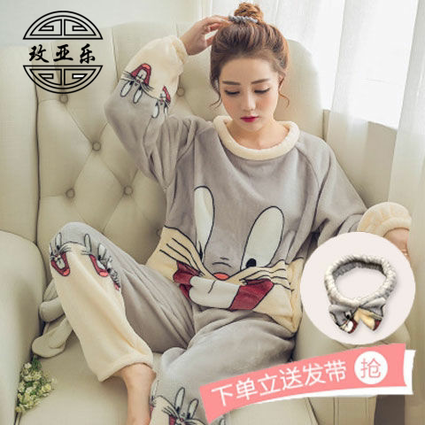 Коралловая бархатная демисезонная пижама, фланелевый лонгслив, нарукавники, милый мультяшный комплект