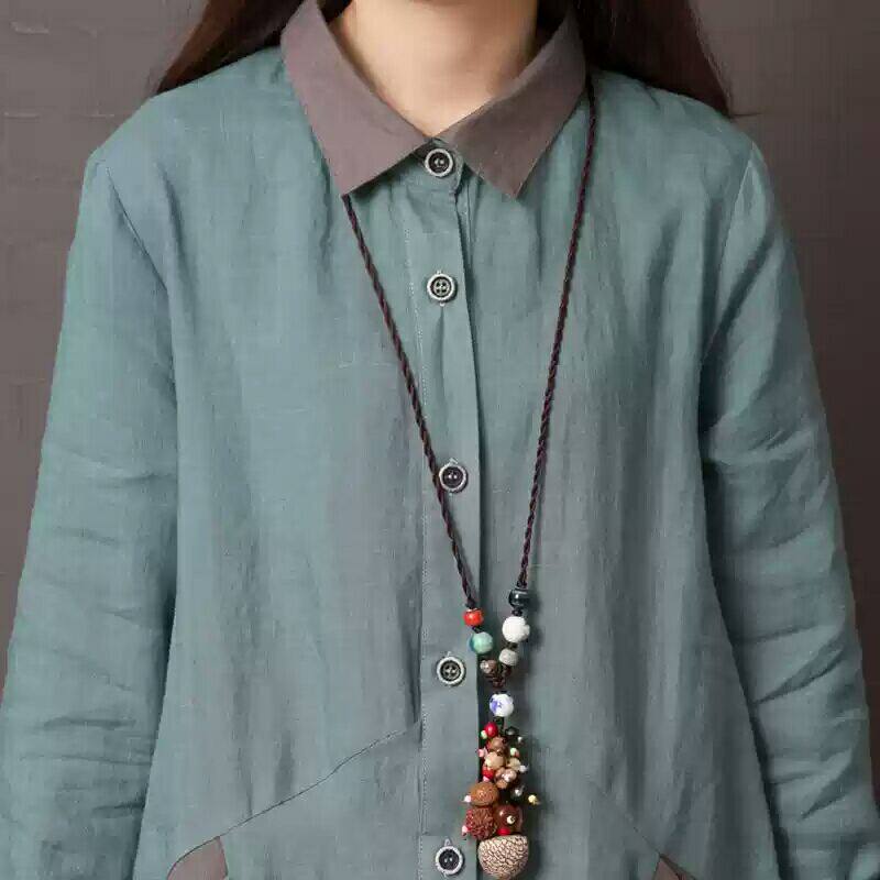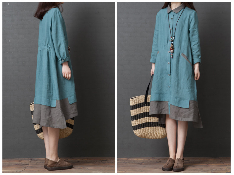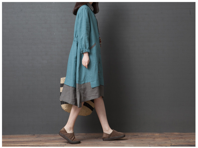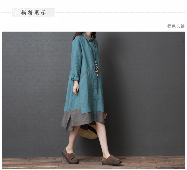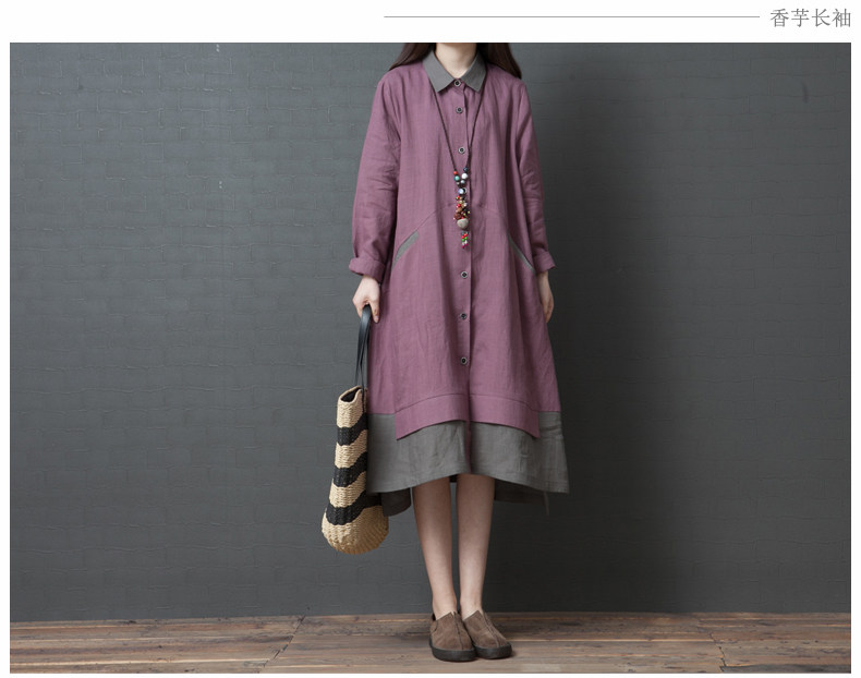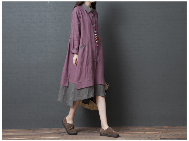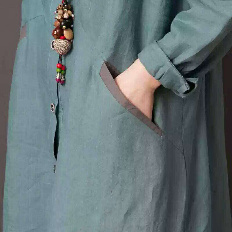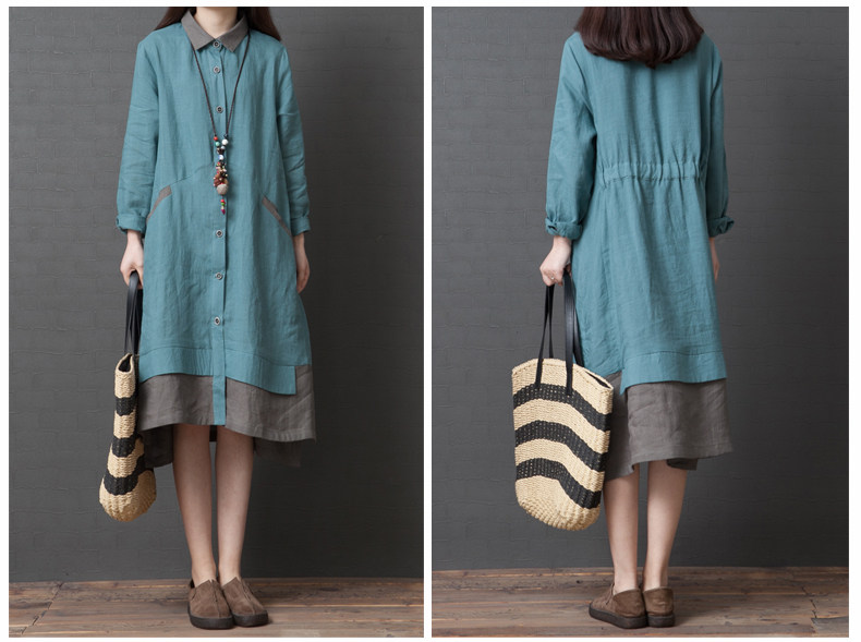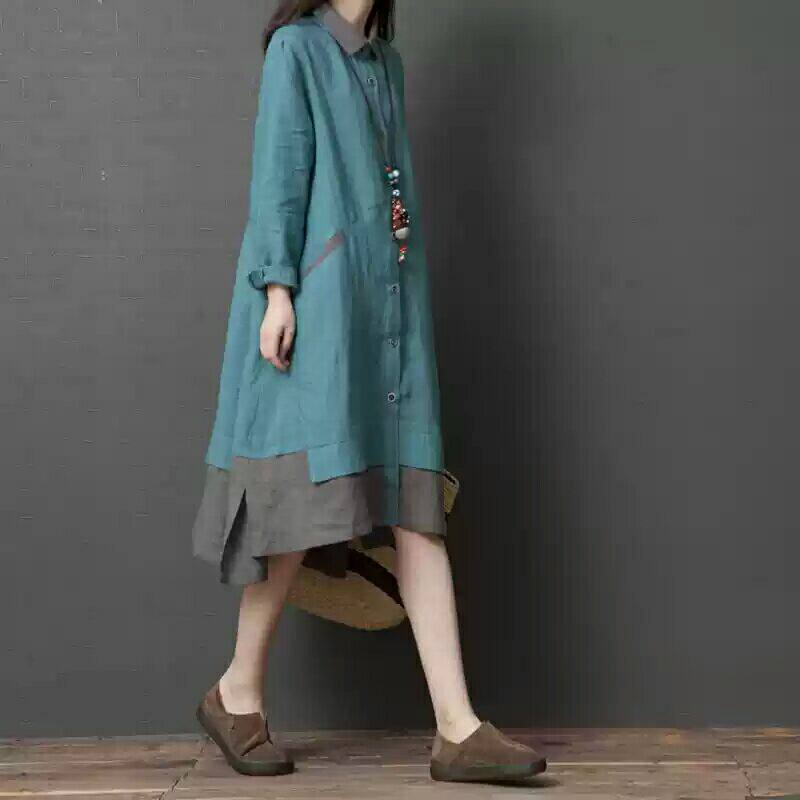 Рубашка, осенняя юбка, длинное платье, из хлопка и льна, 2019, оверсайз, средней длины