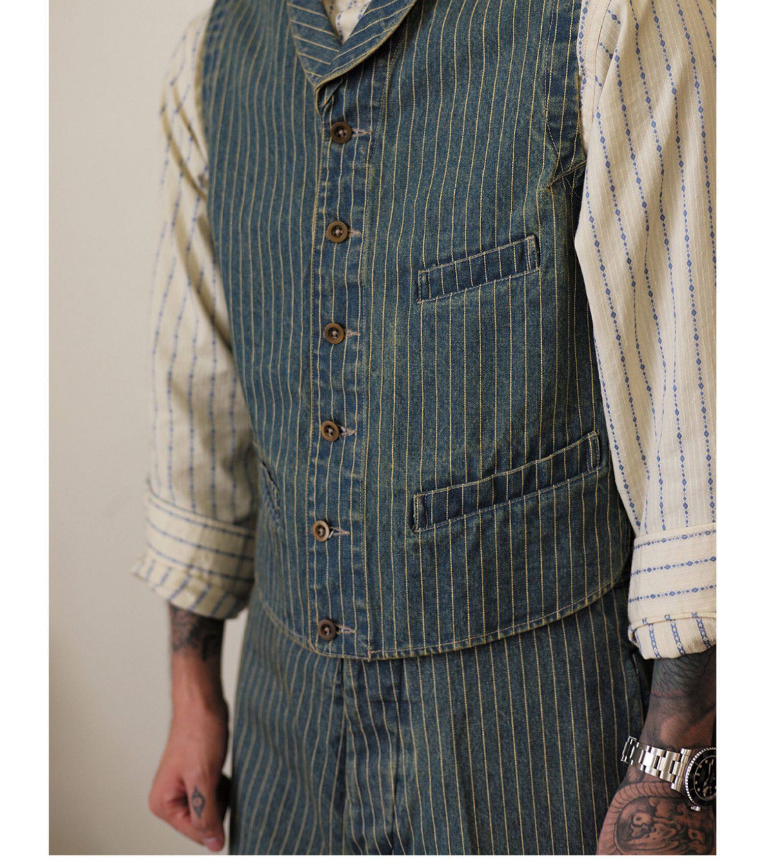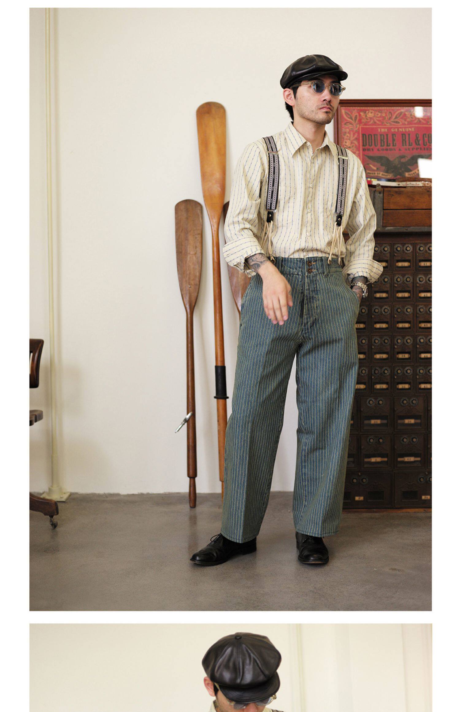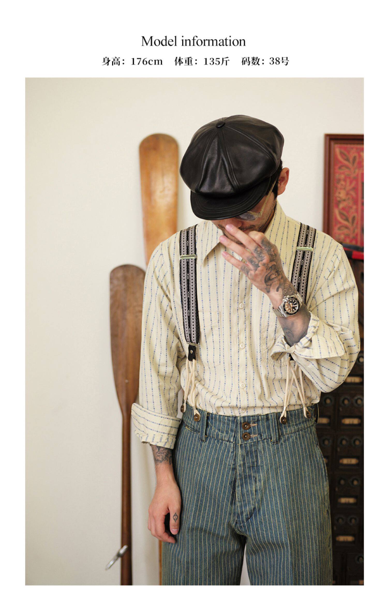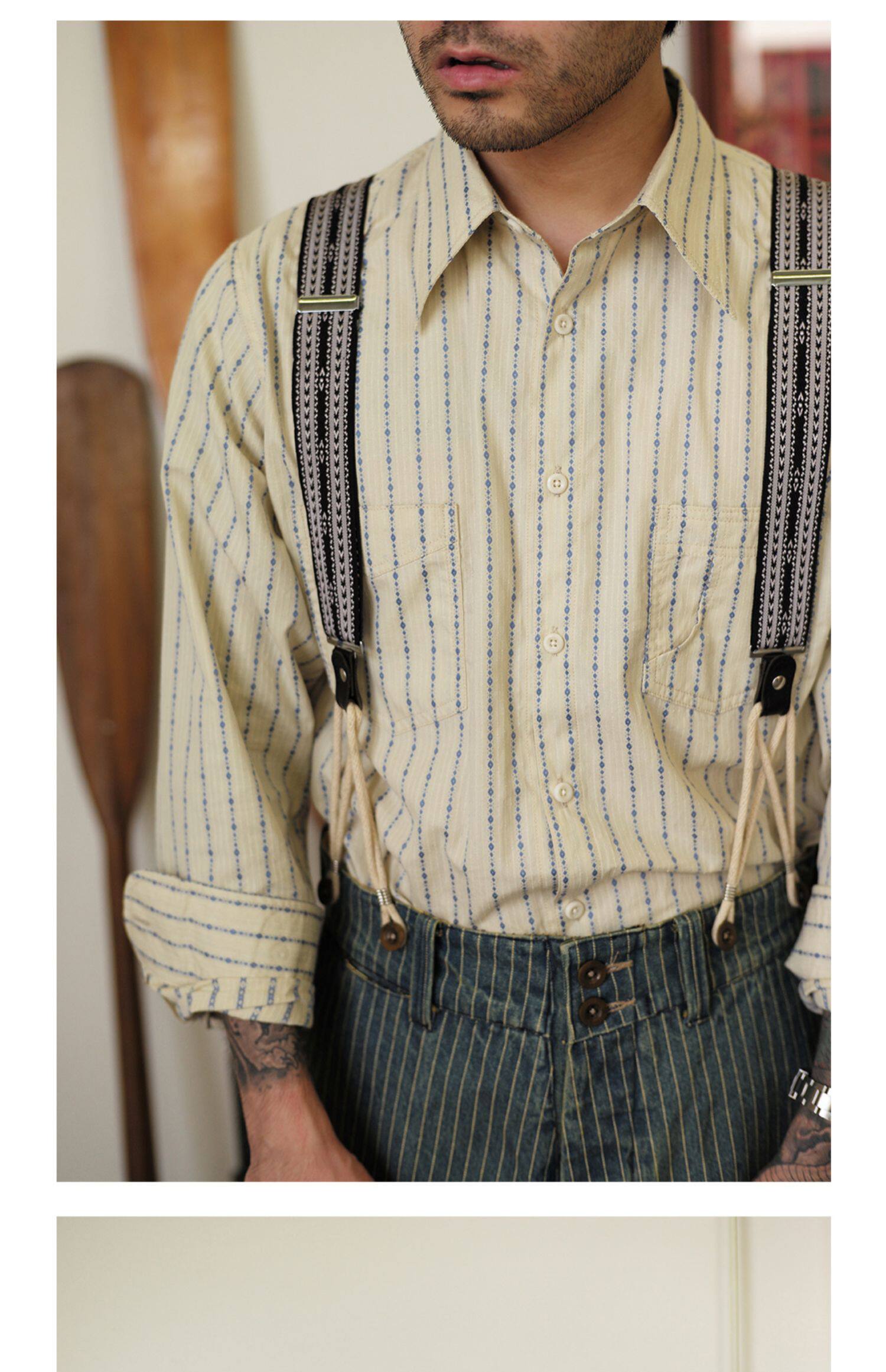 Древний канчжэн профсоюзный союз 2020 -Аут Ретро полосатый бежевый жаккардовый рубашка Lu204