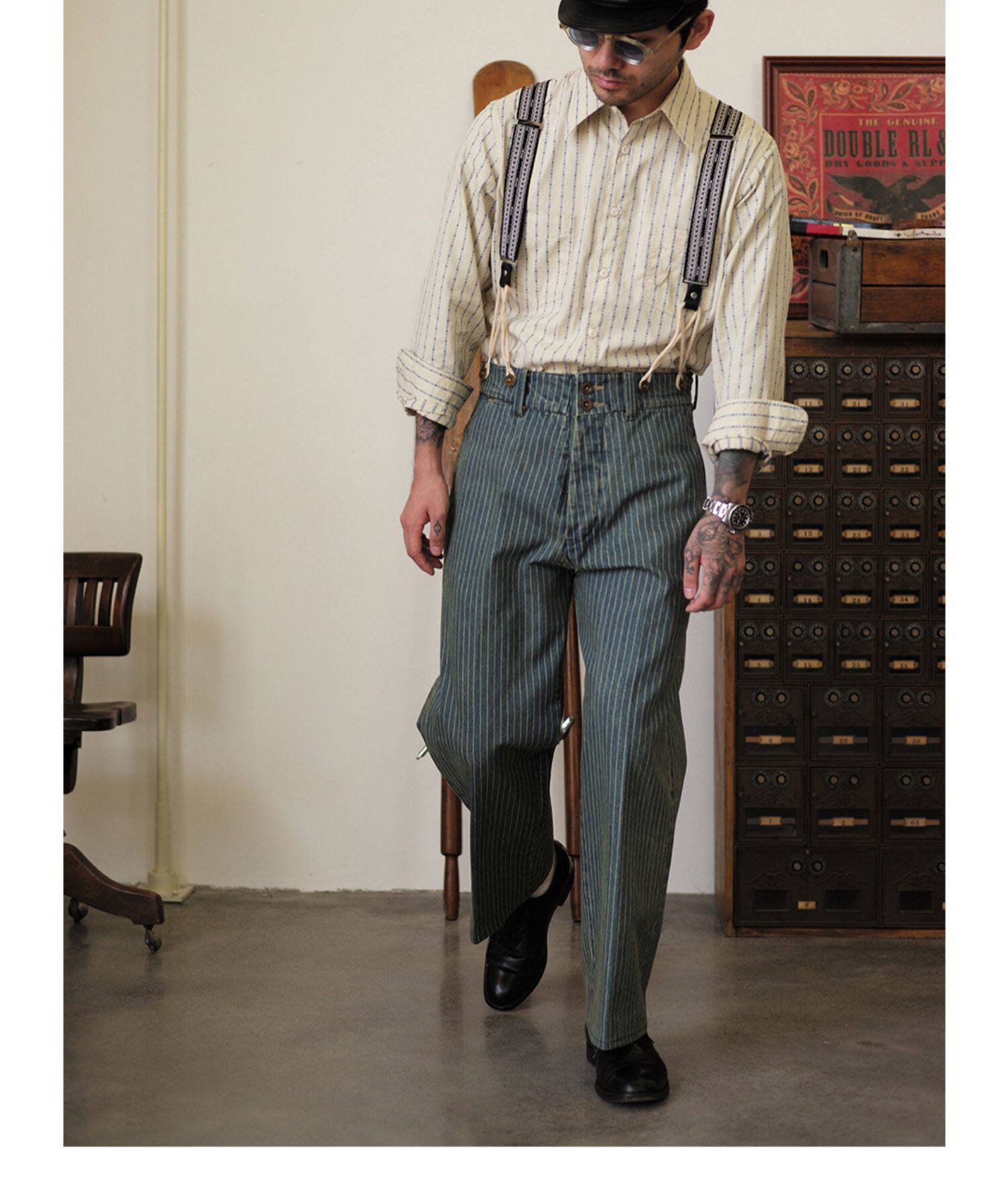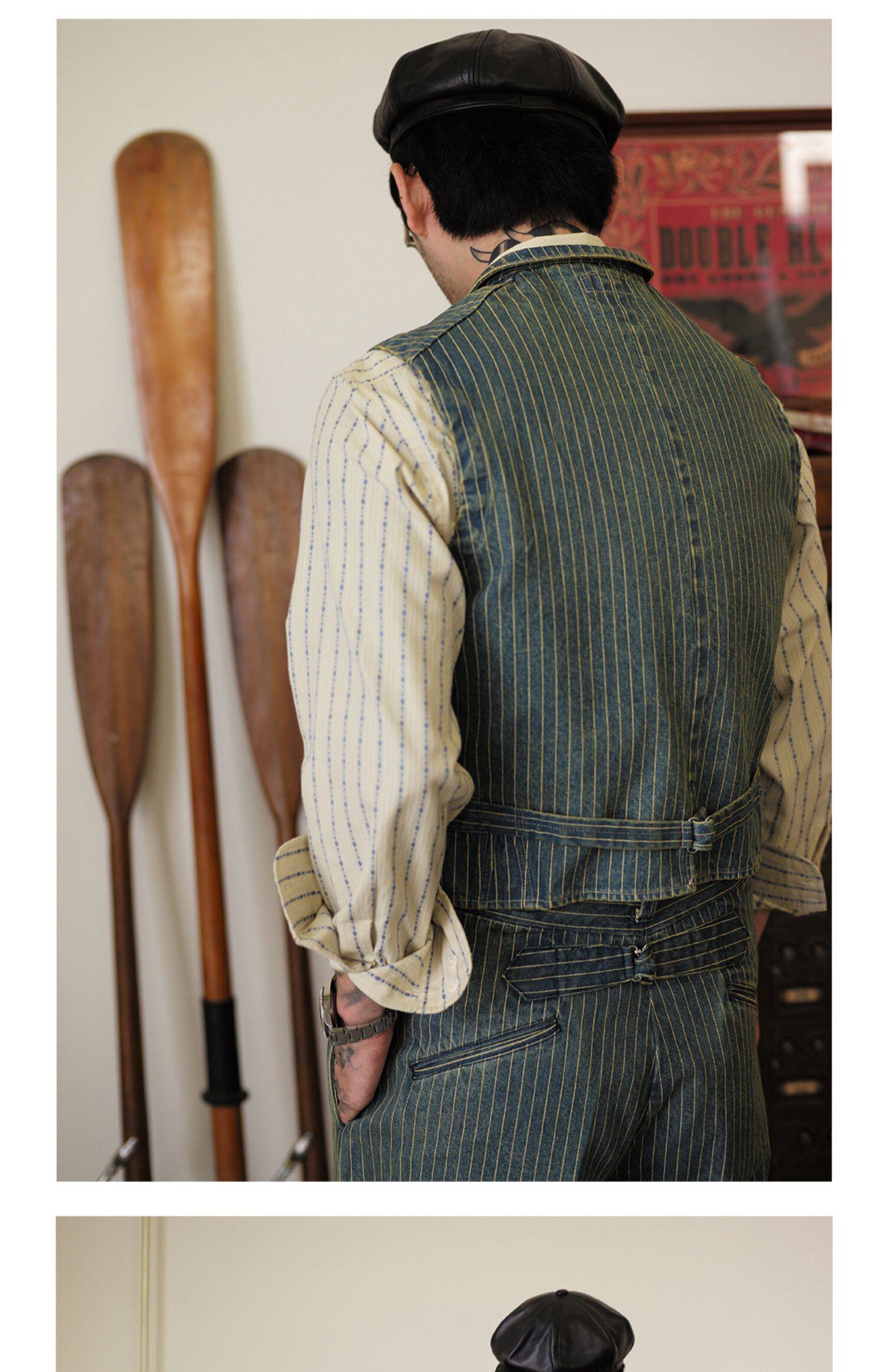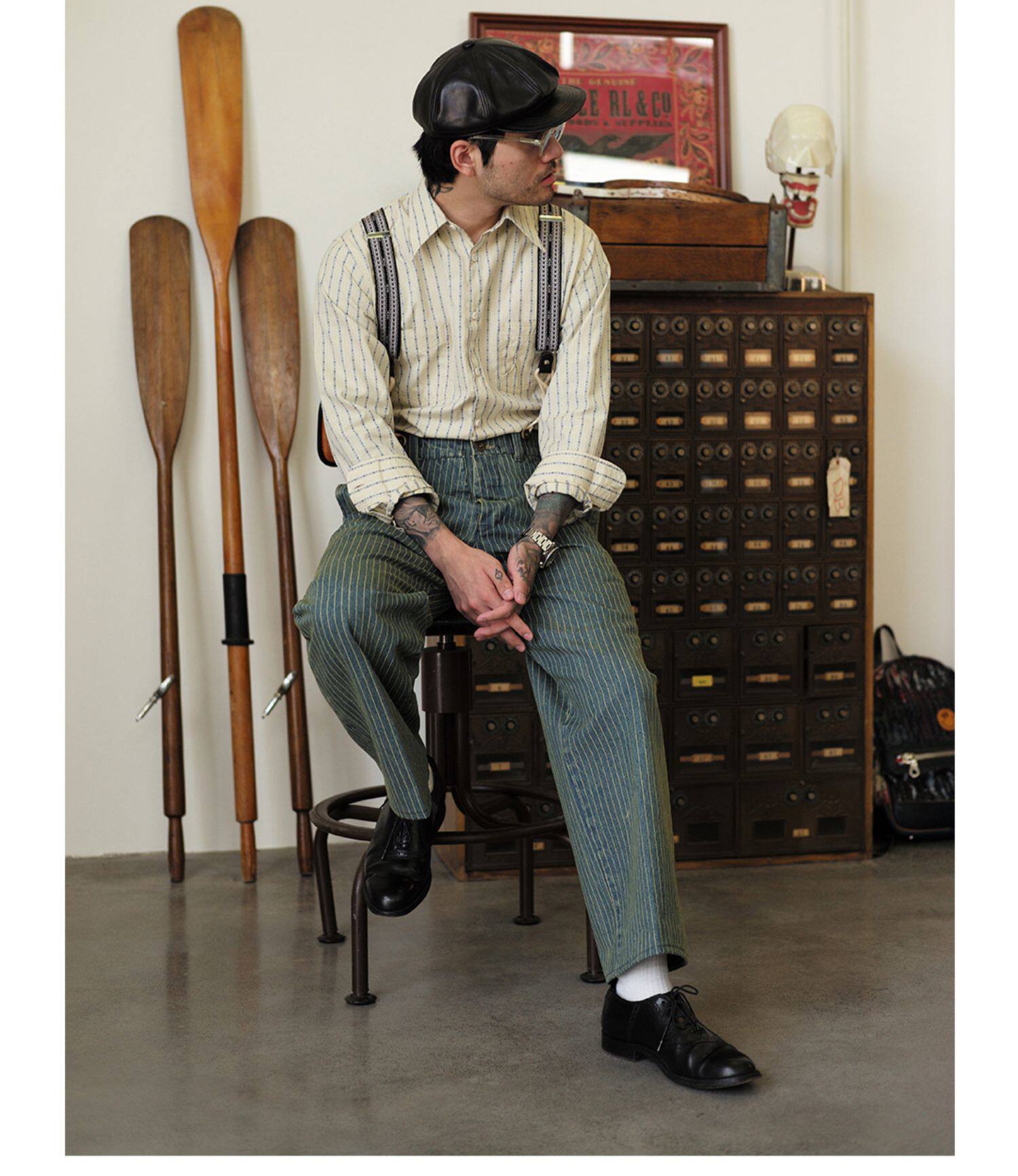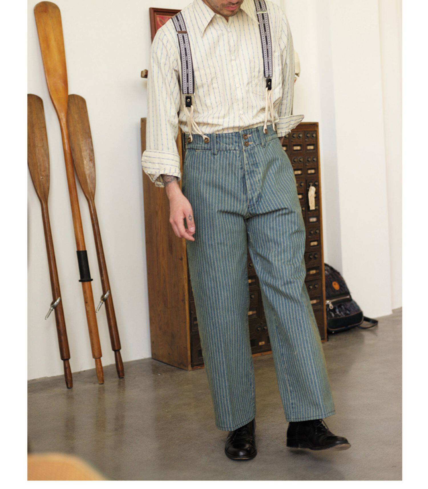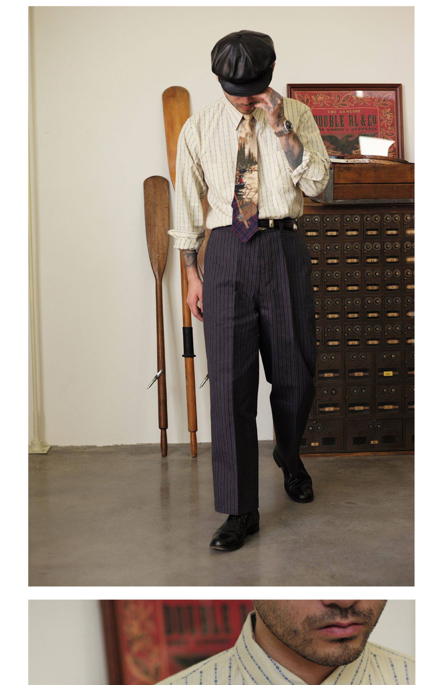 Древний канчжэн профсоюзный союз 2020 -Аут Ретро полосатый бежевый жаккардовый рубашка Lu204