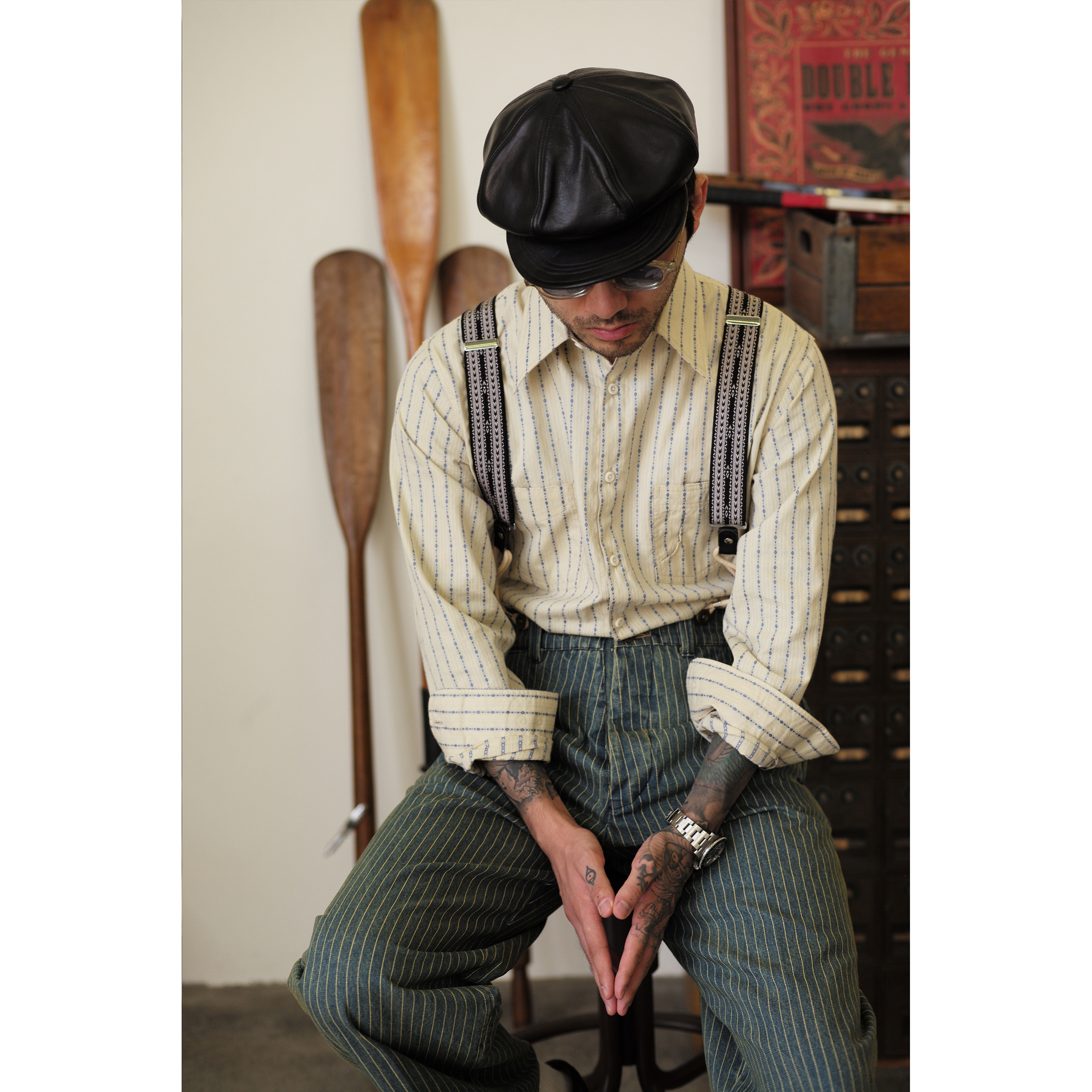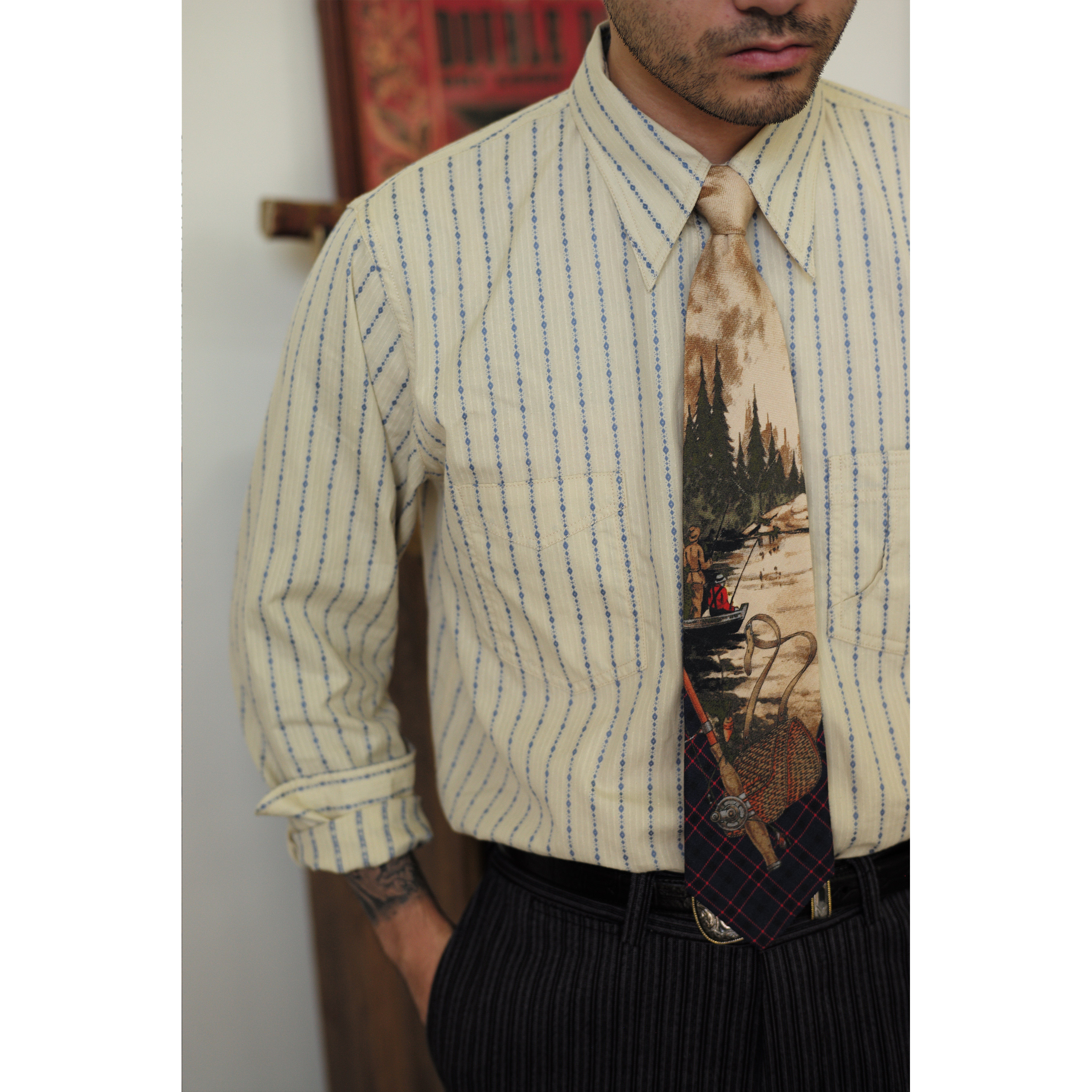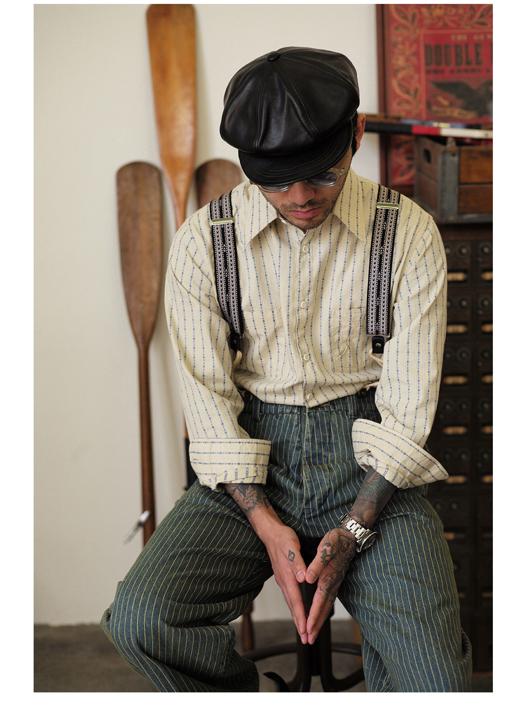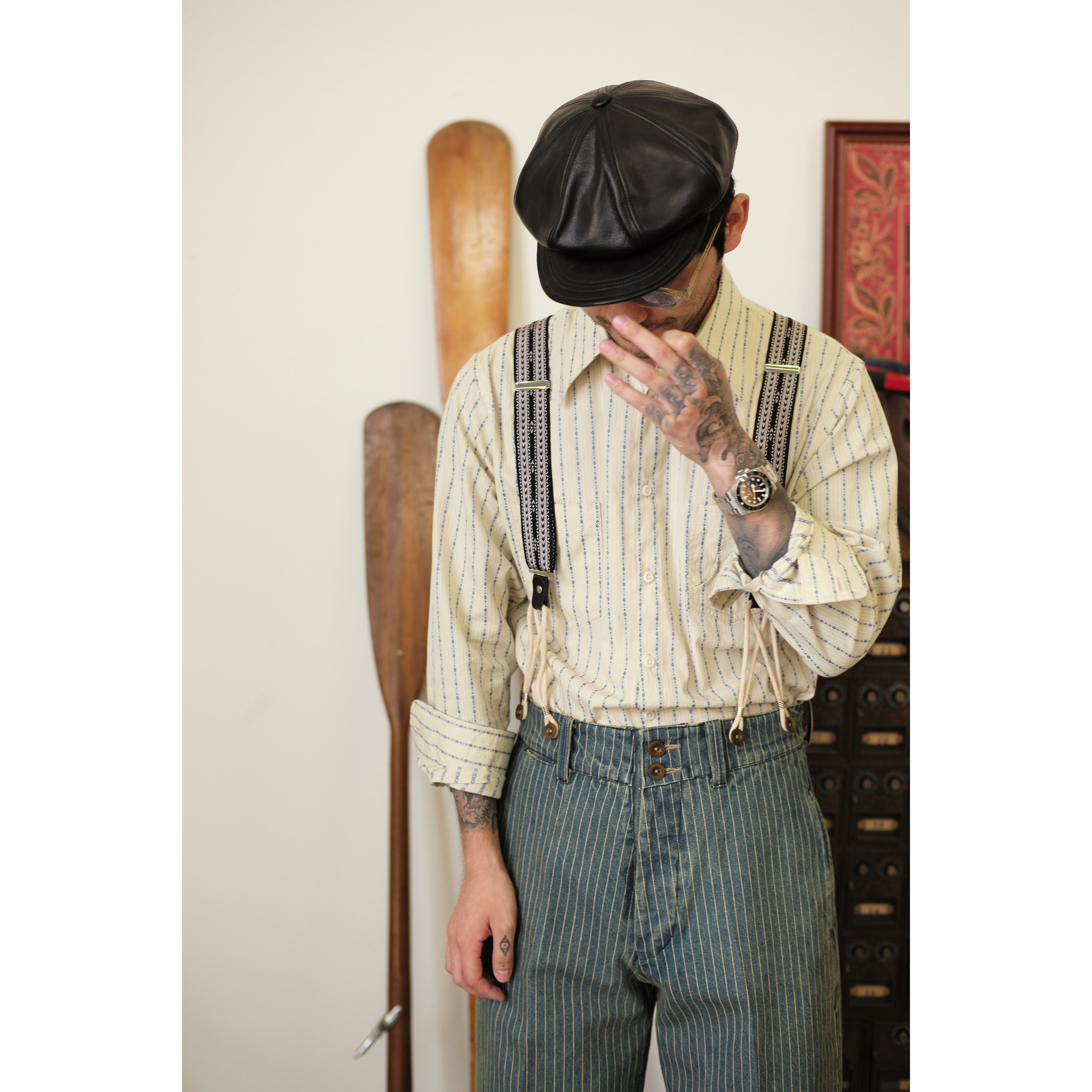 Древний канчжэн профсоюзный союз 2020 -Аут Ретро полосатый бежевый жаккардовый рубашка Lu204