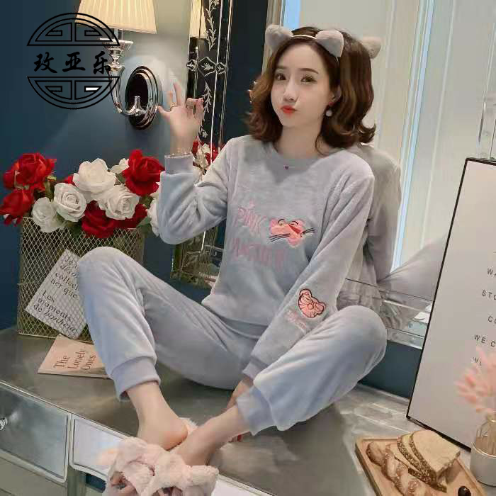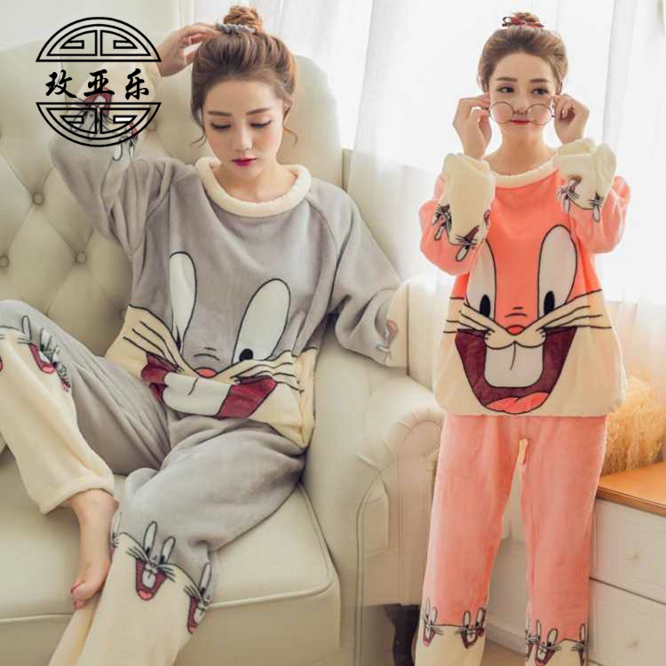 Зимняя коралловая бархатная фланелевая демисезонная пижама, мультяшный милый комплект, большой размер