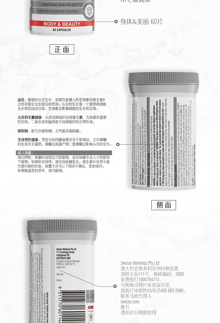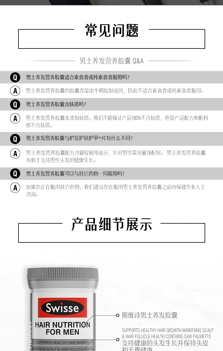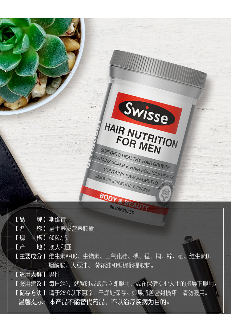 Австралийский Swisse Swelle Men's Hair Colum
