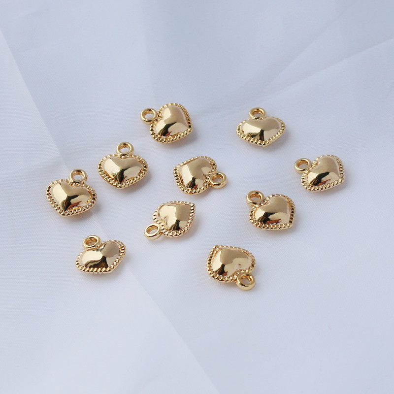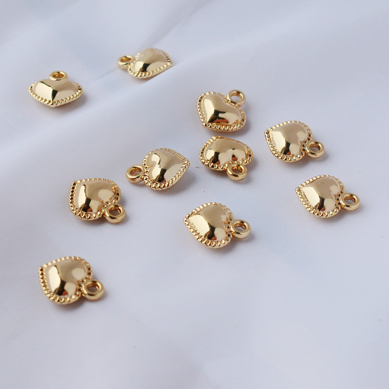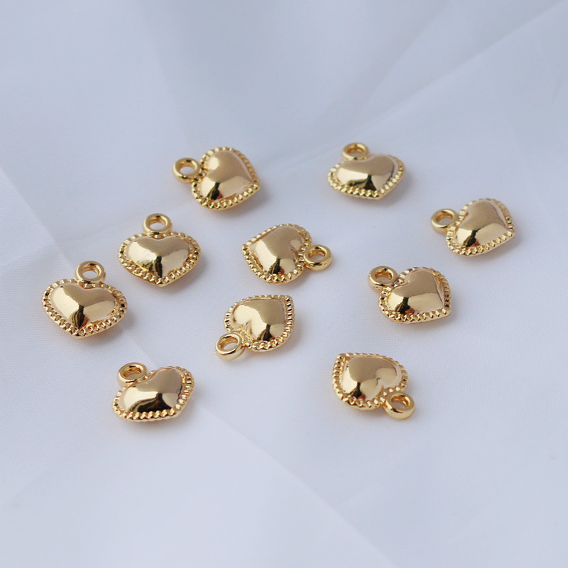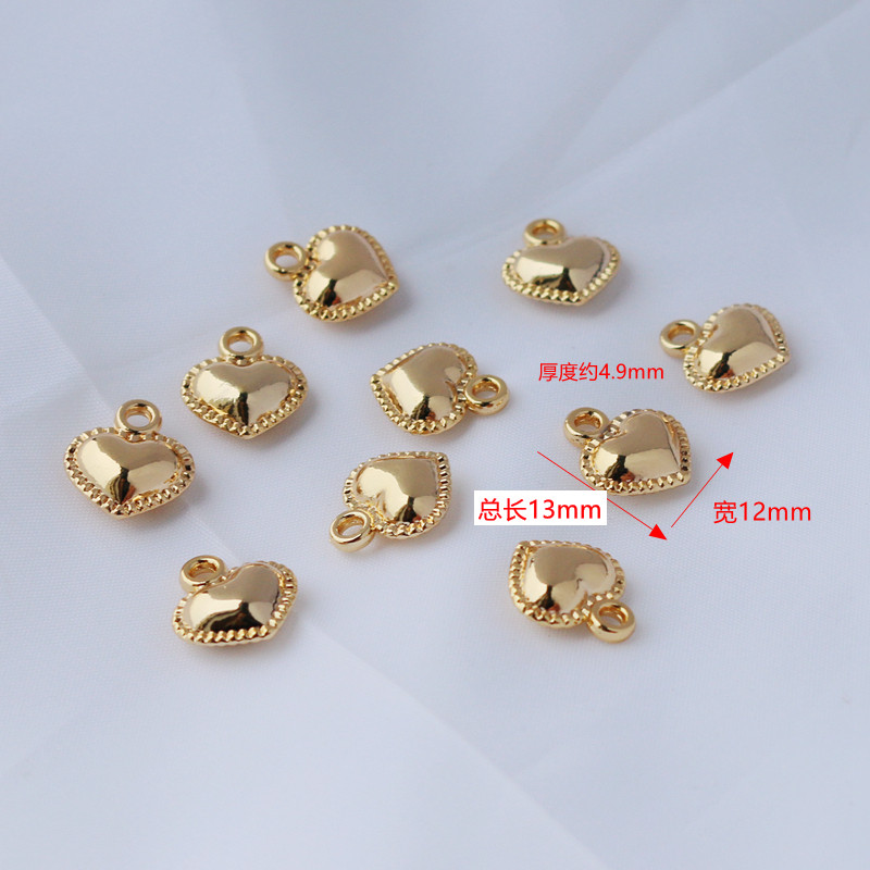 Двусторонная глянцевая подвеска в форме сердца, браслет, ожерелье, 14 карат, золотой цвет, 12mm, DIY