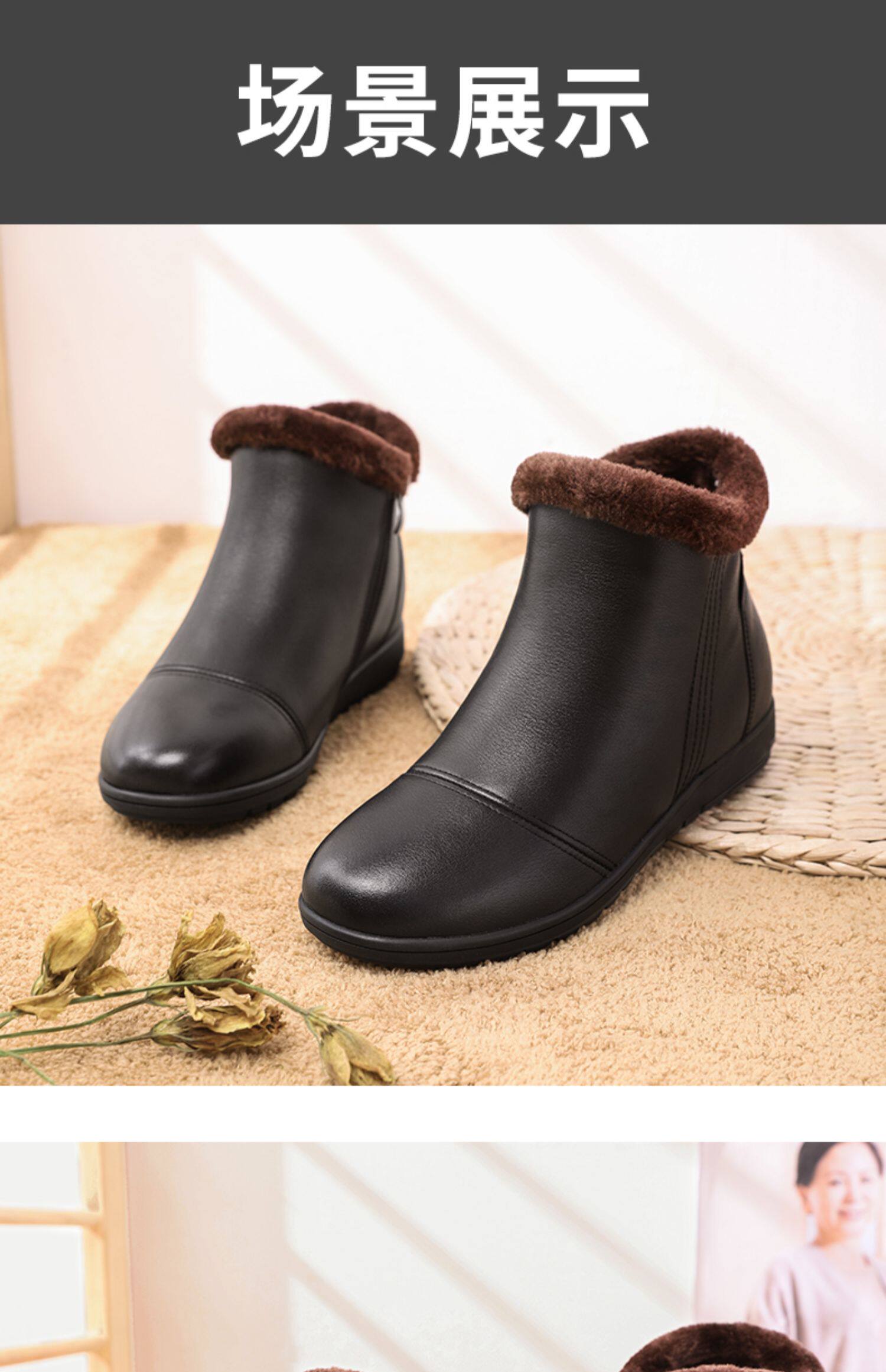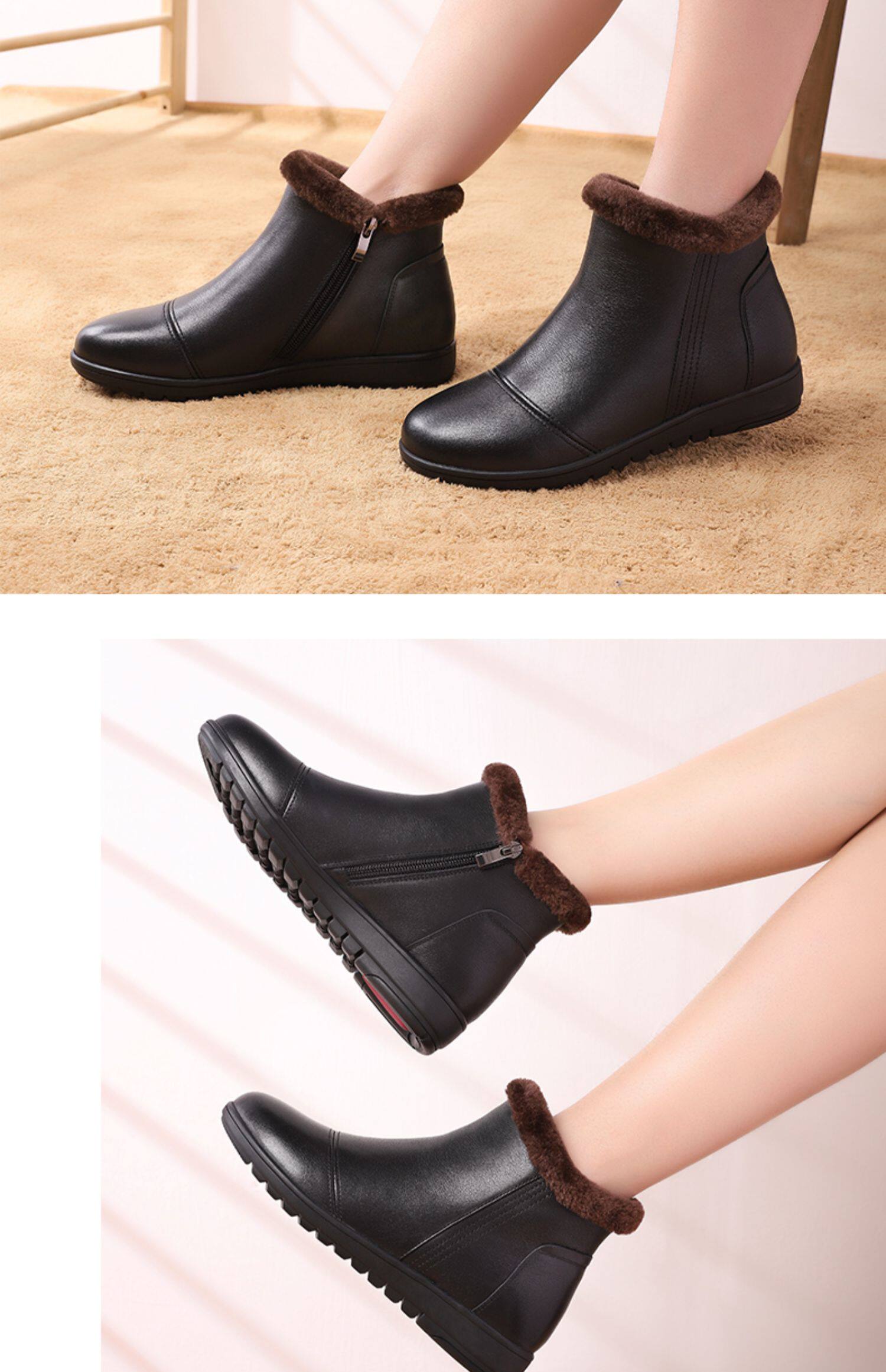 Демисезонные короткие сапоги, флисовая удерживающая тепло нескользящая обувь для кожаной обуви для матери, 2020, для среднего возраста, из натуральной кожи