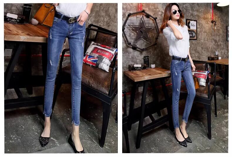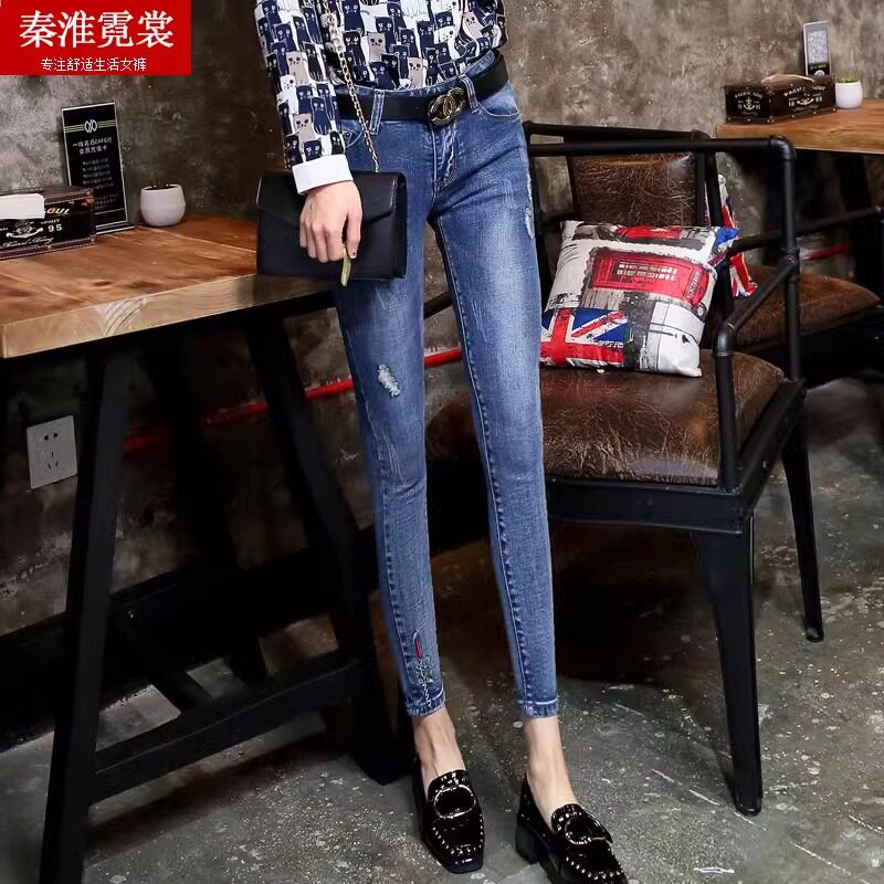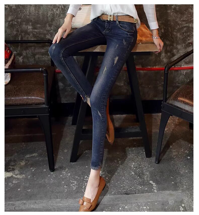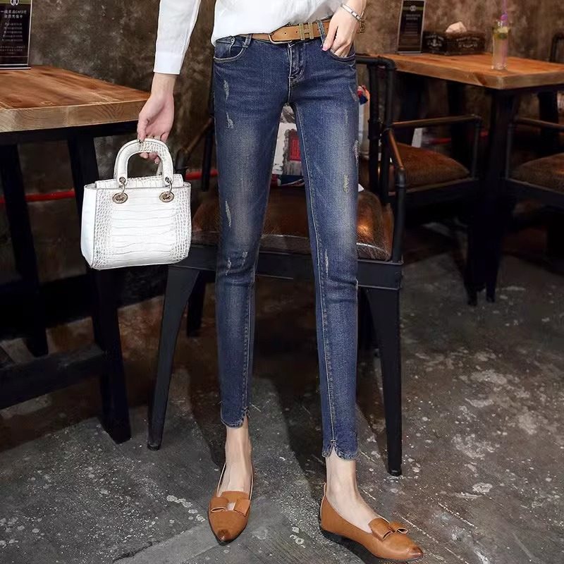 Джинсы, ретро штаны, эластичный карандаш, в обтяжку, подходят для подростков, в корейском стиле