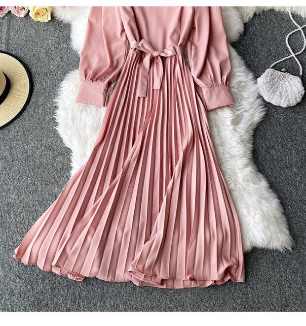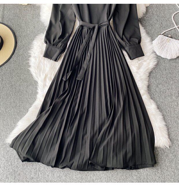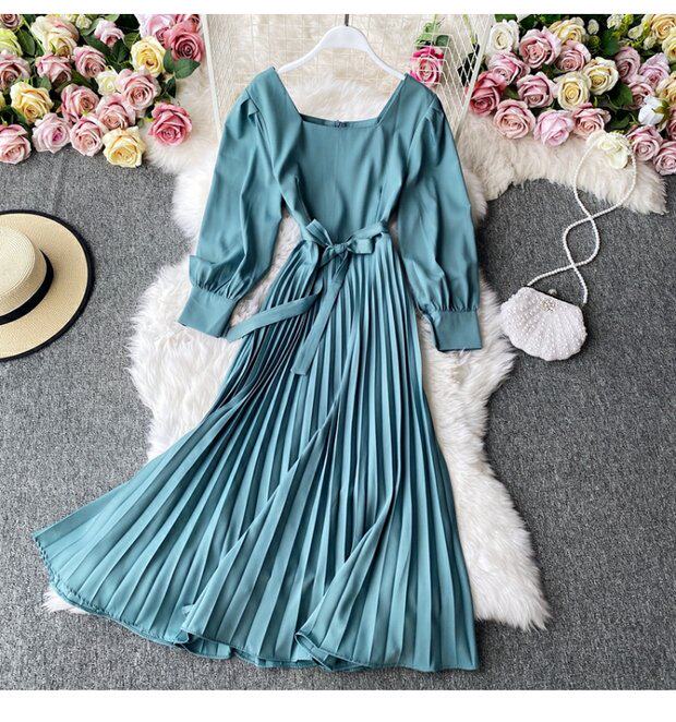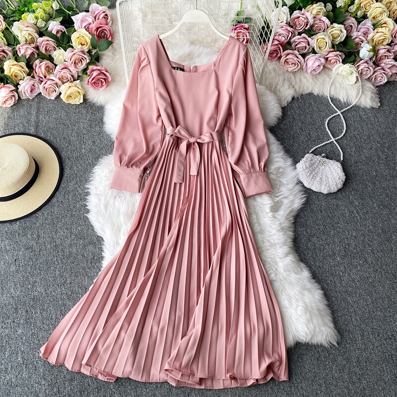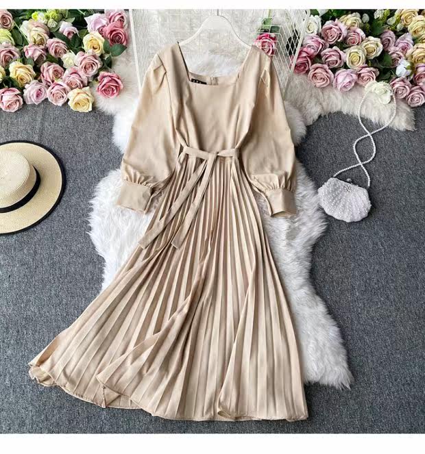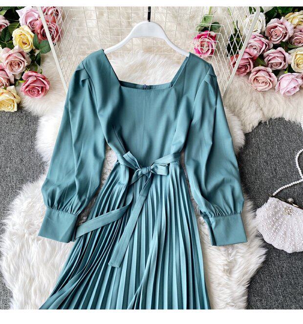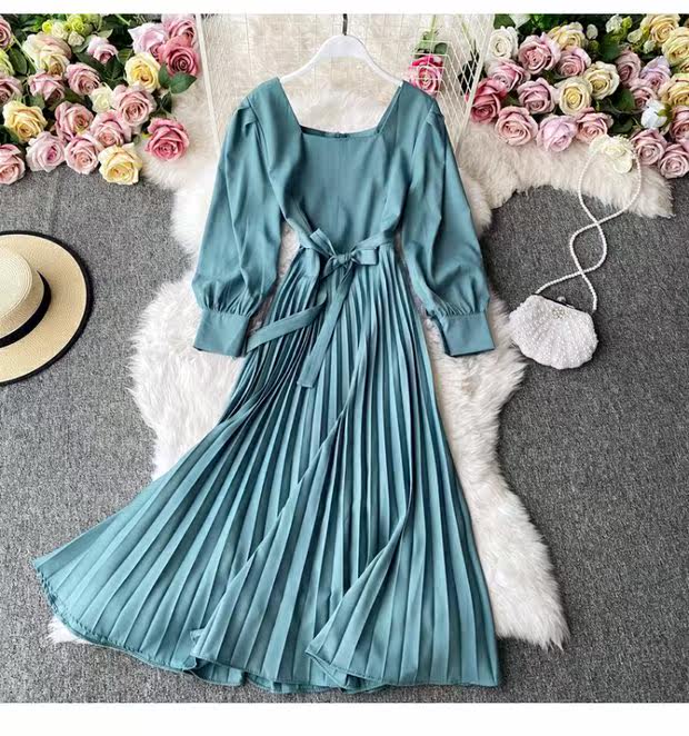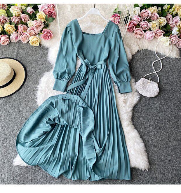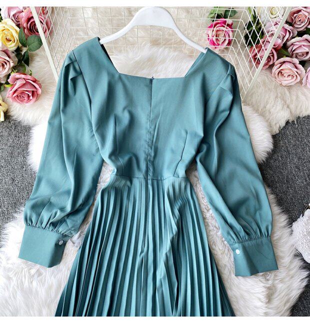Демисезонное модное платье, длинная юбка, коллекция 2021, французский стиль, квадратный вырез, в корейском стиле, яркий броский стиль, длина макси