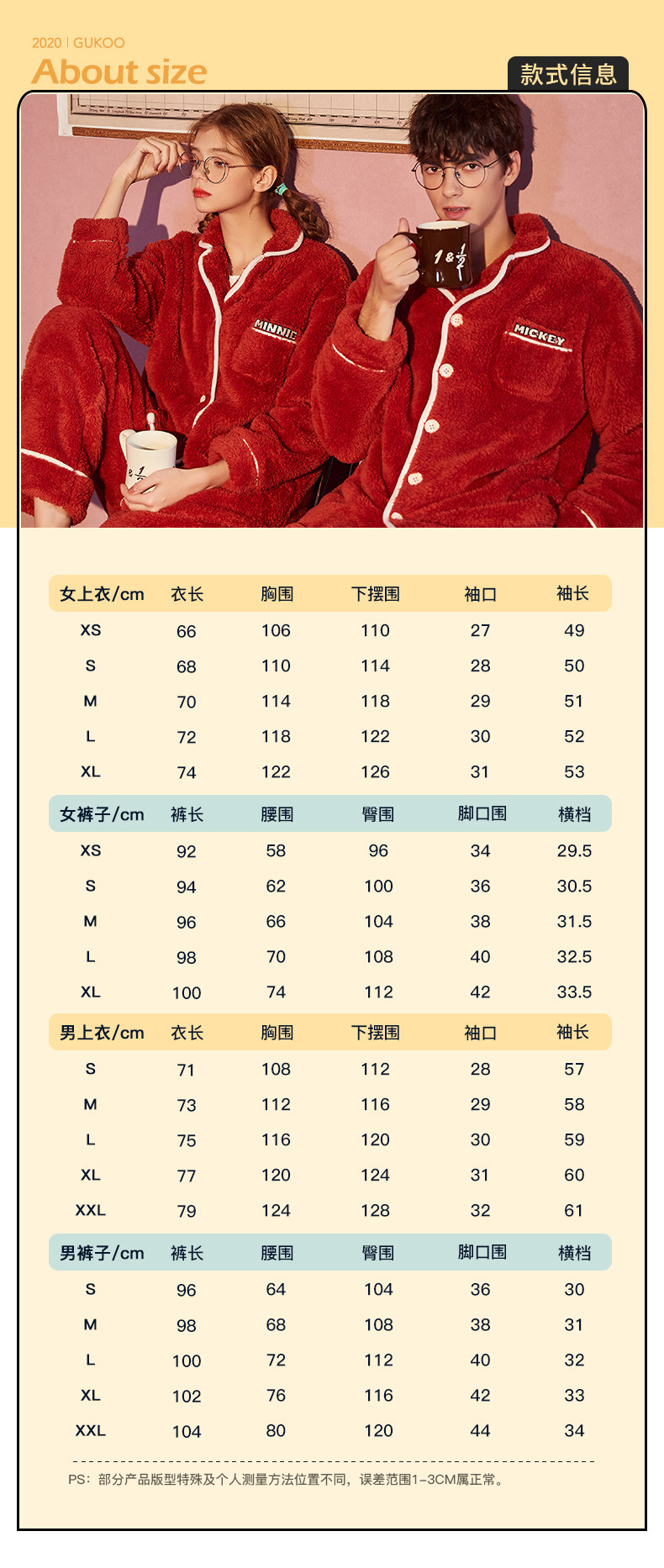 Gukoo/果壳 Дисней, оберег на день рождения для влюбленных, демисезонная пижама, термобелье, коралловый комплект
