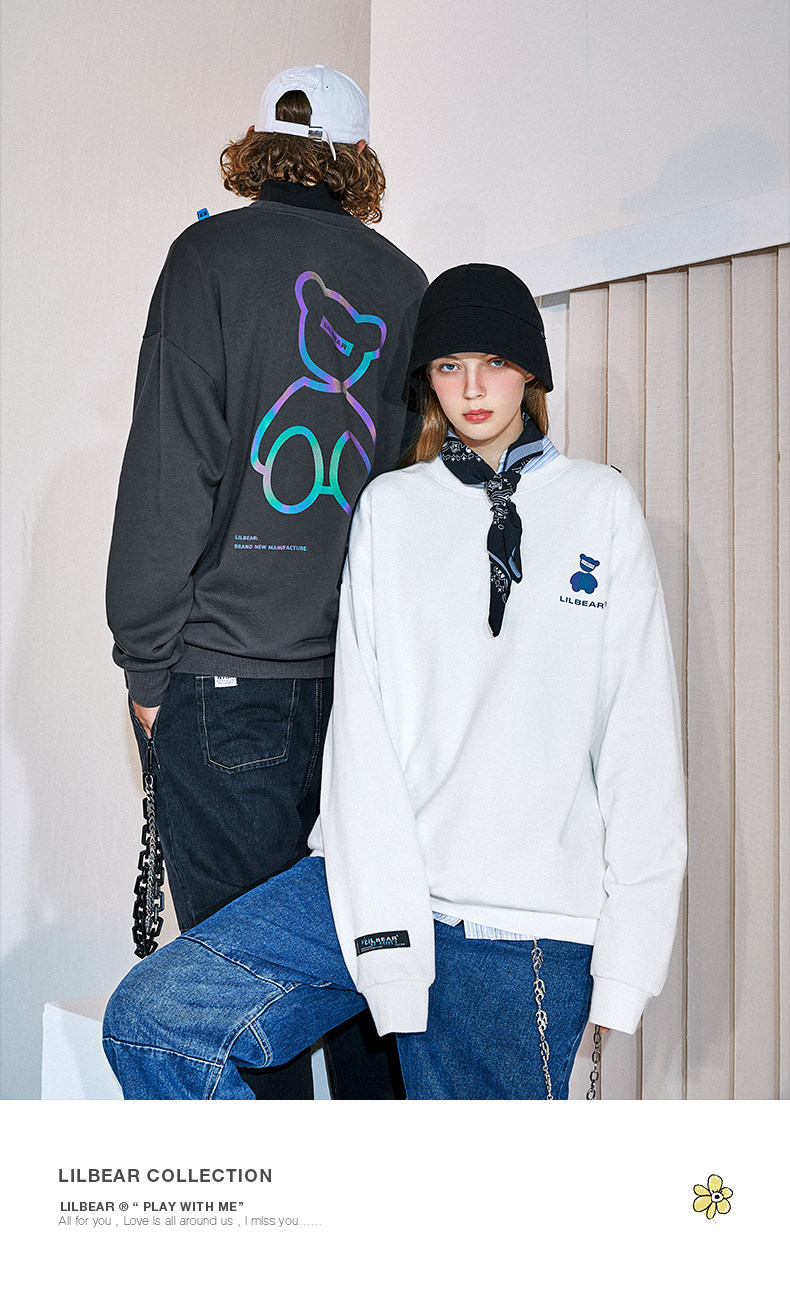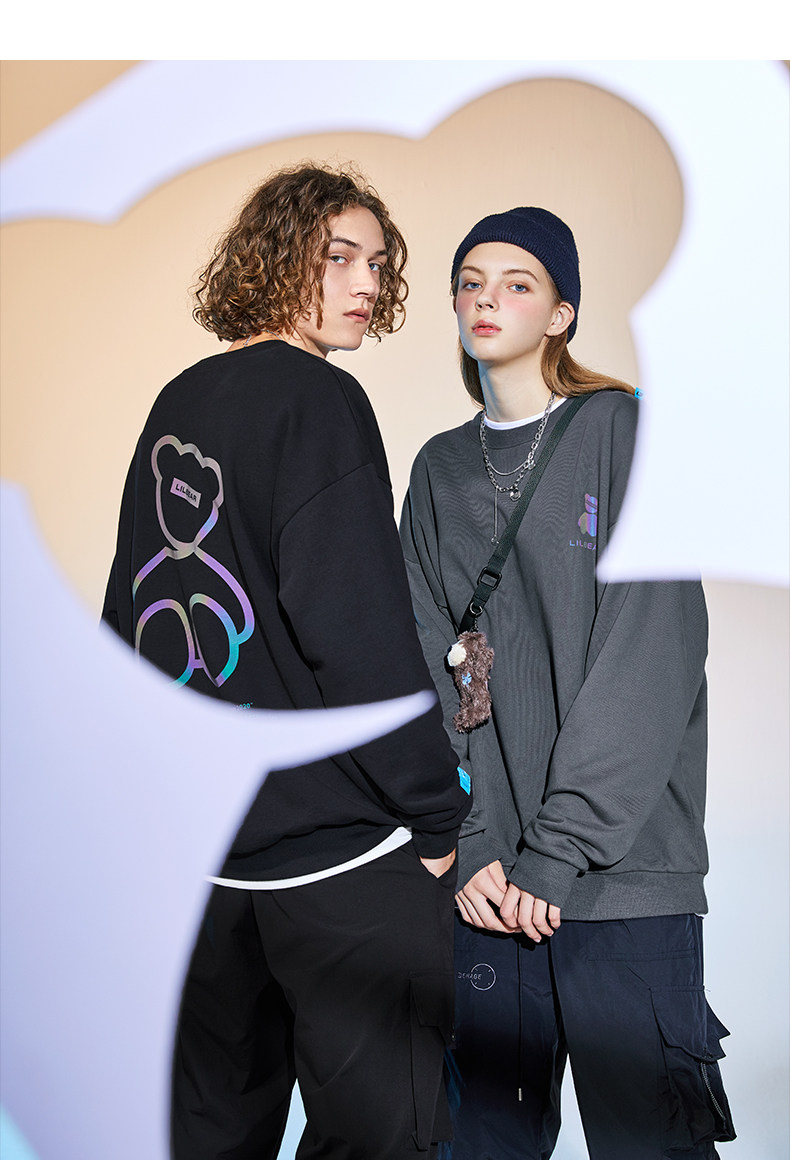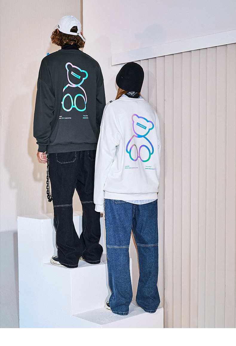 Lilbetter Толстовка, светоотражающая трендовая флисовая парная одежда подходит для мужчин и женщин, с медвежатами, осенняя, в корейском стиле