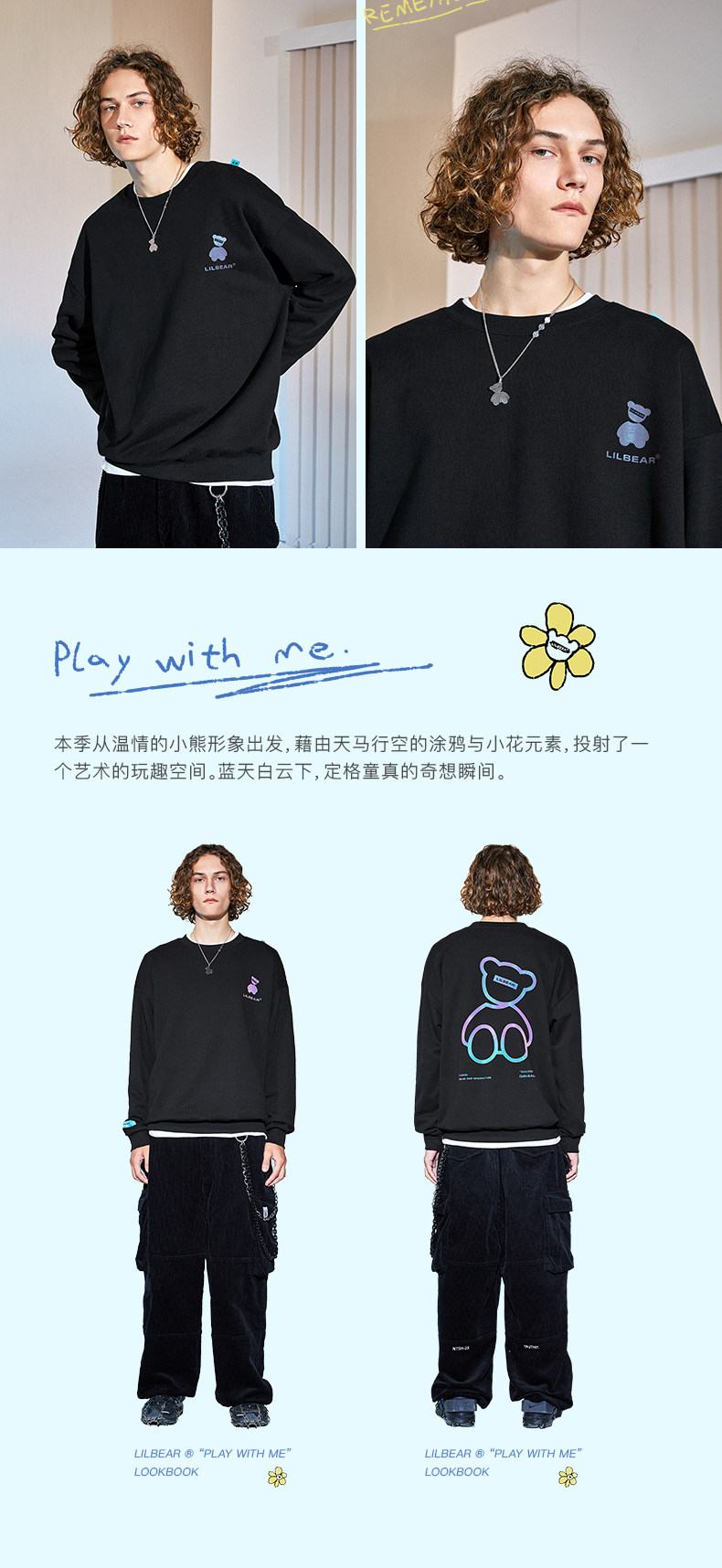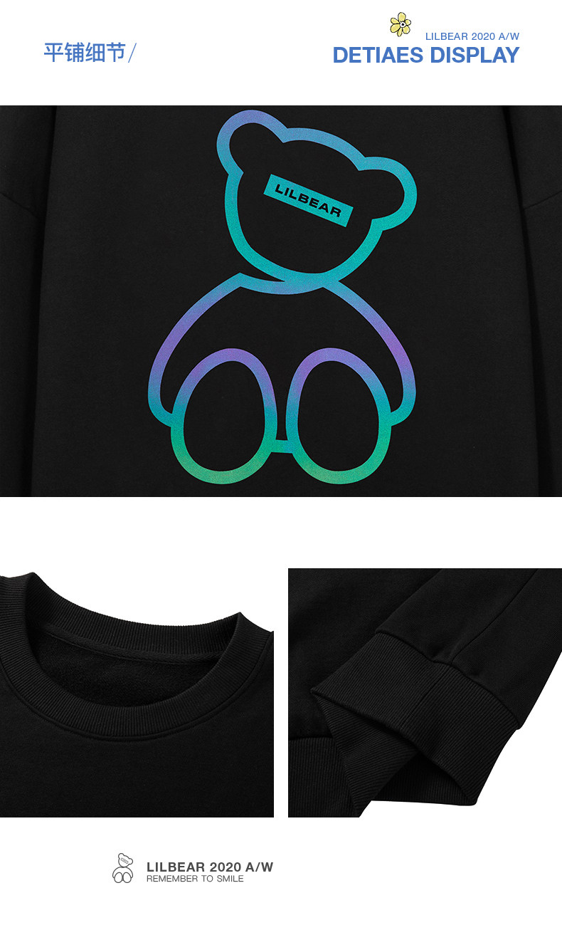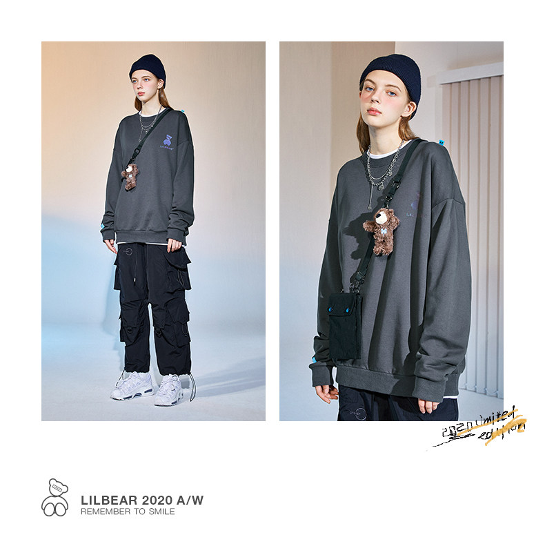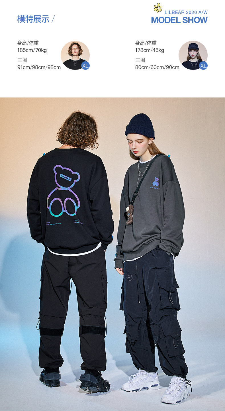 Lilbetter Толстовка, светоотражающая трендовая флисовая парная одежда подходит для мужчин и женщин, с медвежатами, осенняя, в корейском стиле