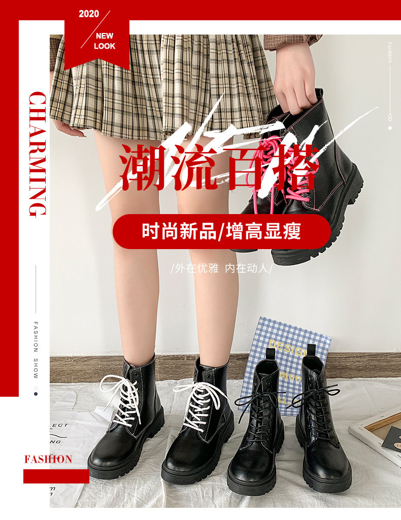 Martens, Tide, зимние черные весенние универсальные короткие сапоги в английском стиле на платформе, ботинки, в британском стиле, 2020