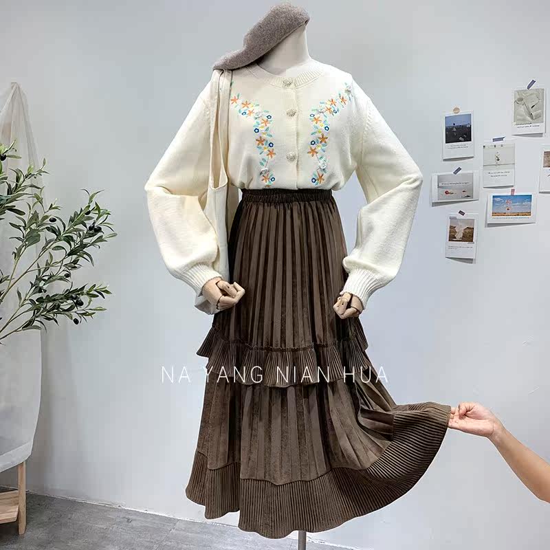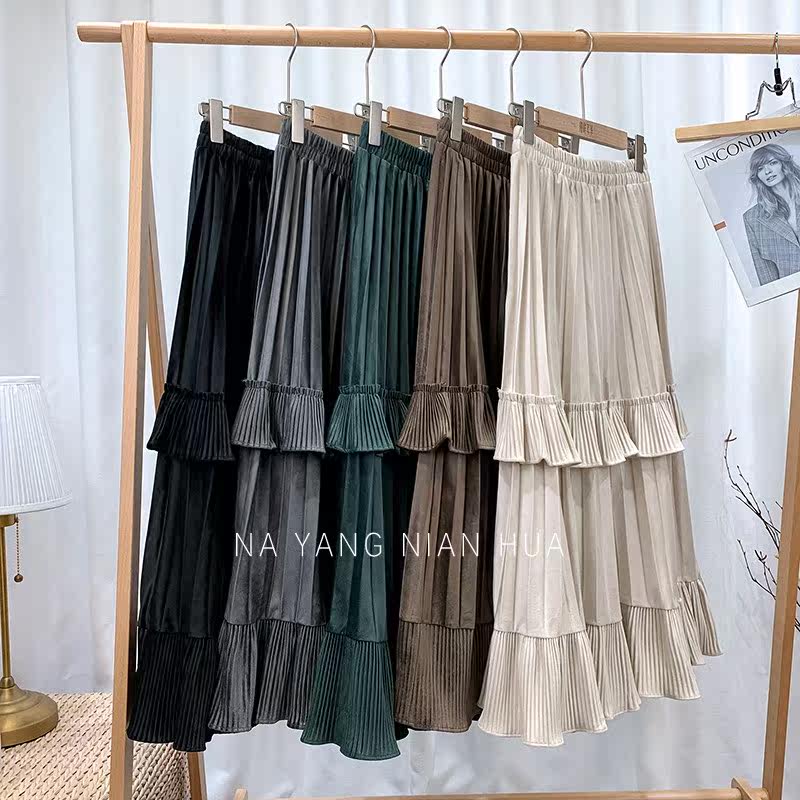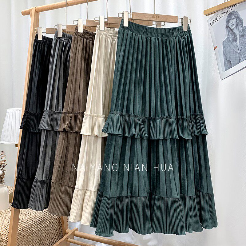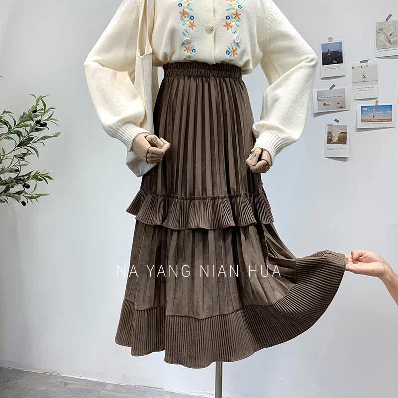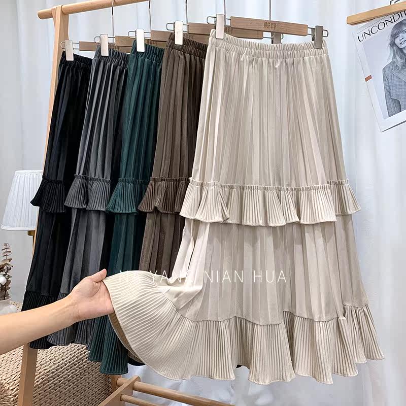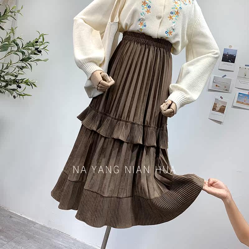 Ретро демисезонная юбка в складку, длинный свитер, высокая талия, плиссированная юбка, А-силуэт