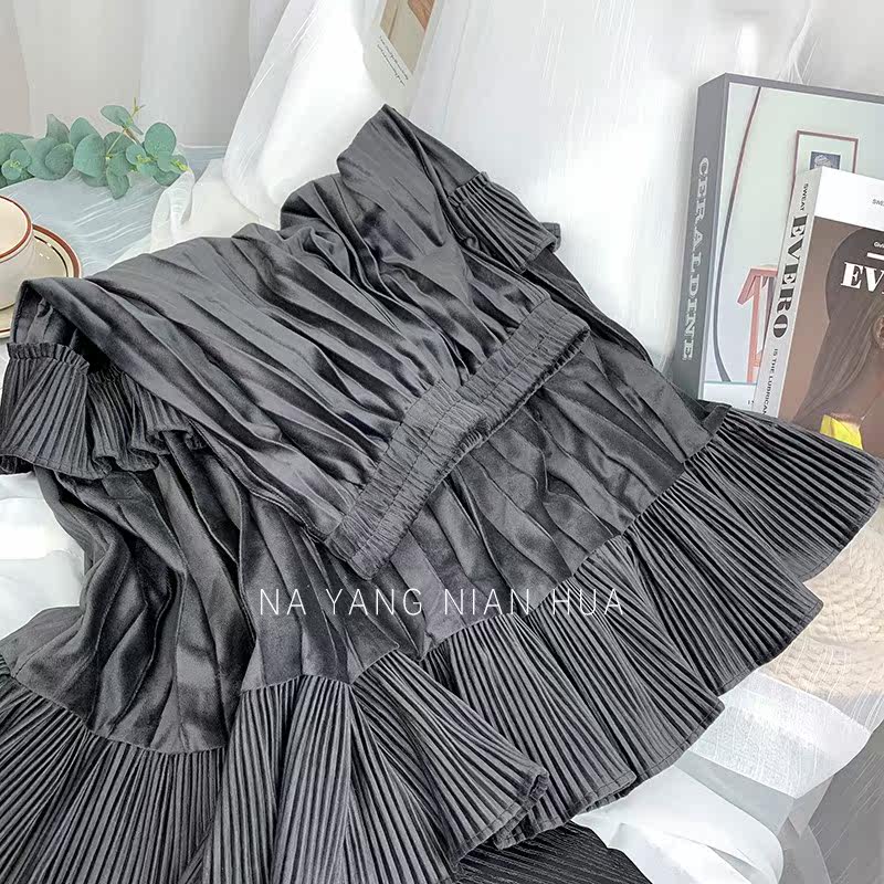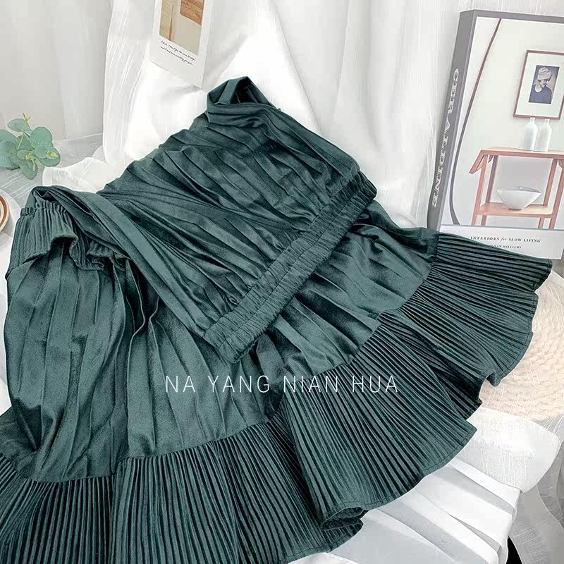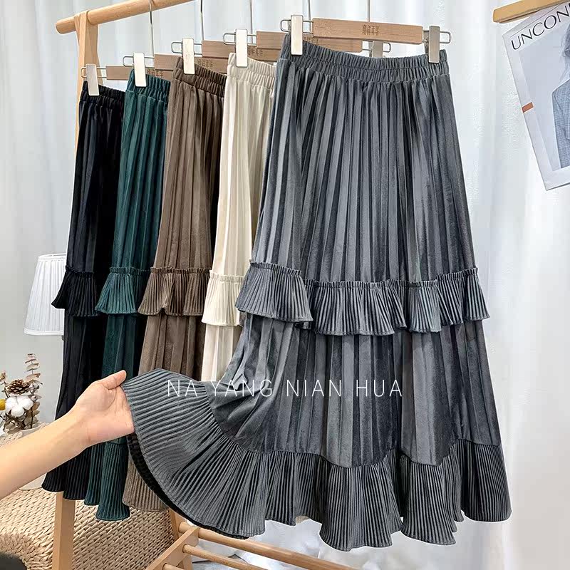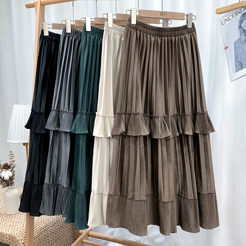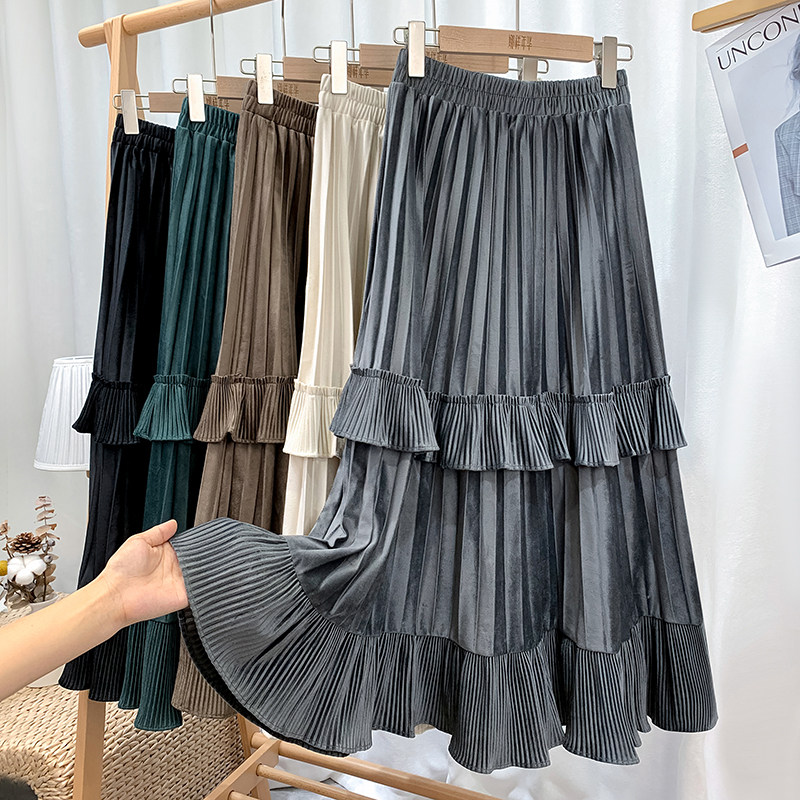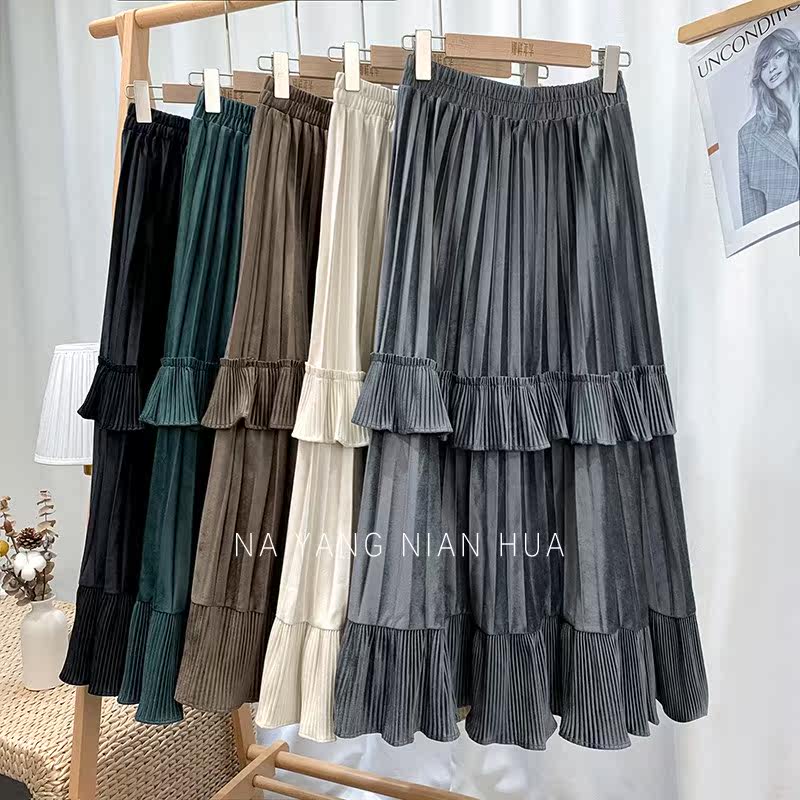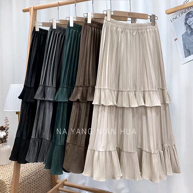 Ретро демисезонная юбка в складку, длинный свитер, высокая талия, плиссированная юбка, А-силуэт
