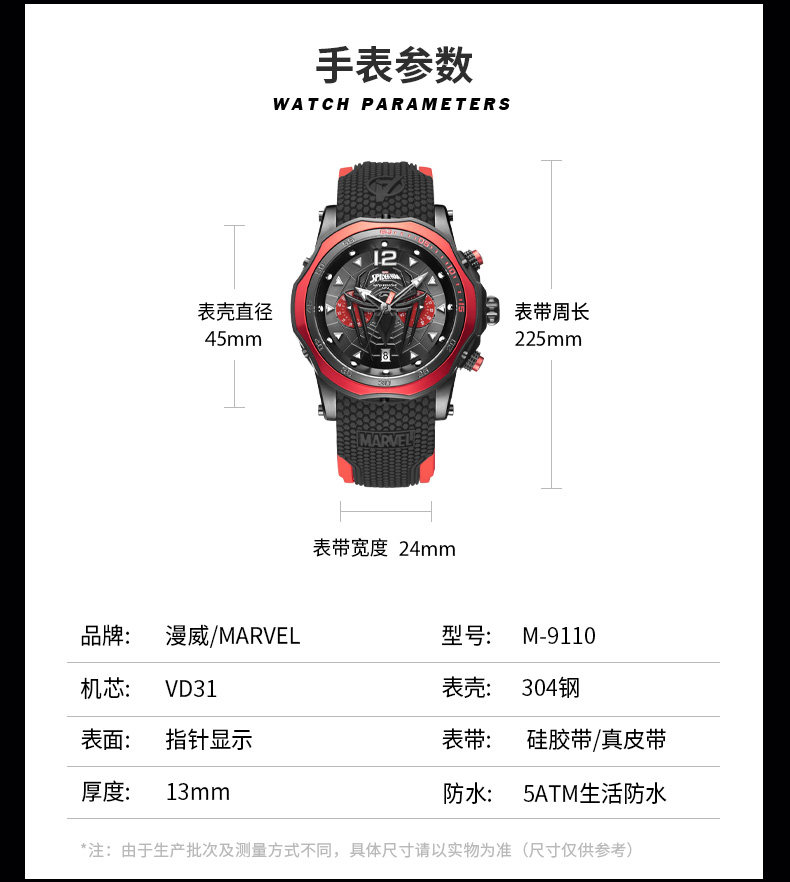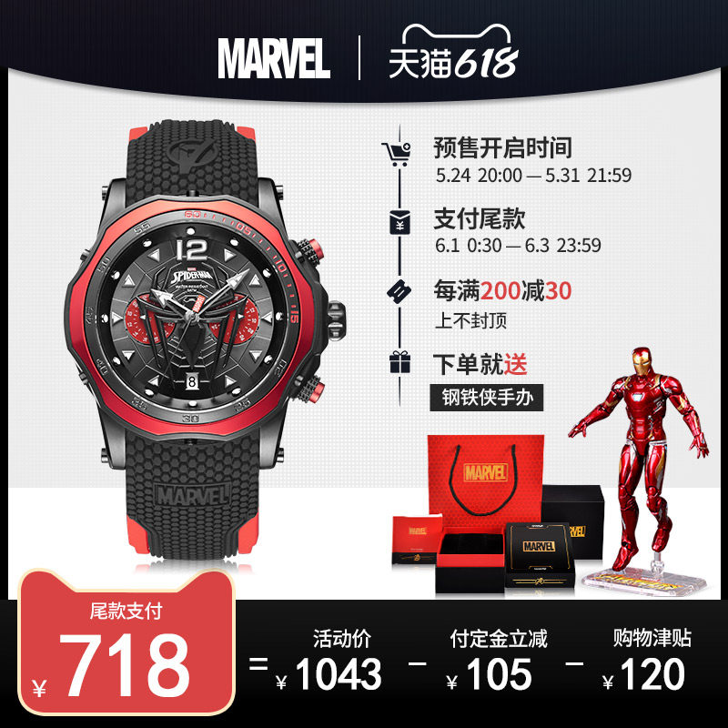 Marvel Liannian Watch Студент мужской студент Marvel настоящий паук -мэн -мемориал персонализированная тенденция личности Cool Watch Мужчина