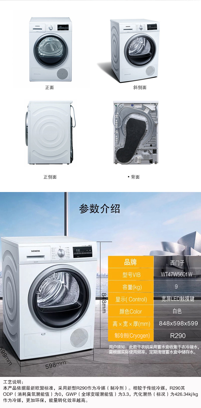 SIEMENS/西门子 Холодный бесплатный морозный холодильник 9 кг стерилизация инвертора.