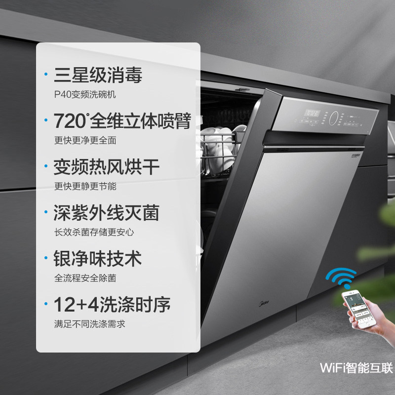 [Та же самая модель торгового центра] Midea P40 Посудомоечная машина внедренная домашняя инвертор, интеллектуальная сушка и стерилизация Brate Book 14 Sets