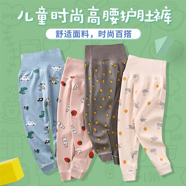 Осеннее детское хлопковое термобелье, бандаж пупочный, детские базовые штаны для мальчиков, высокая талия