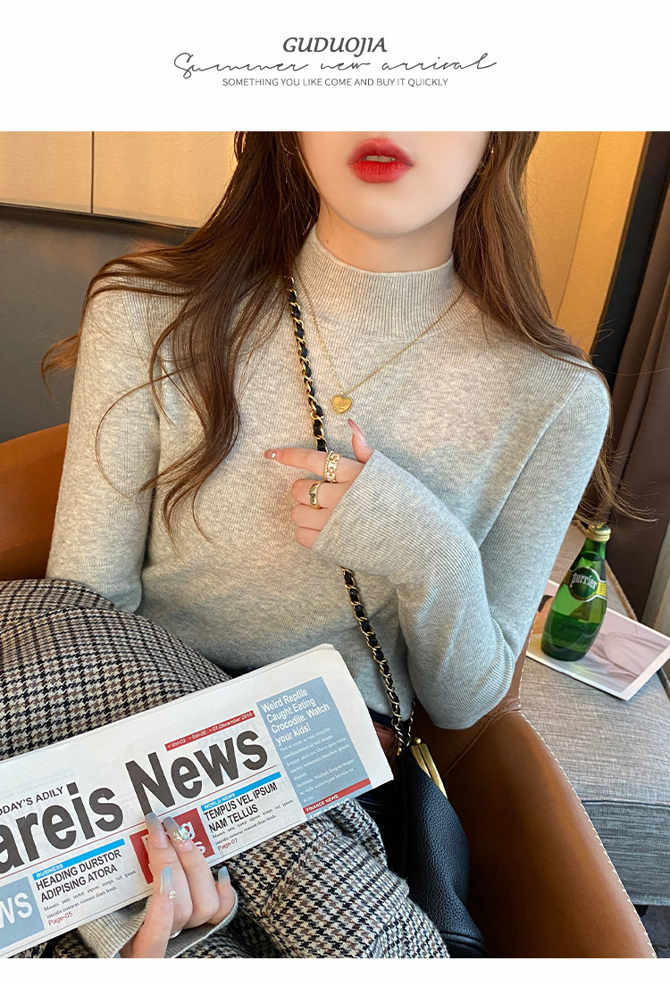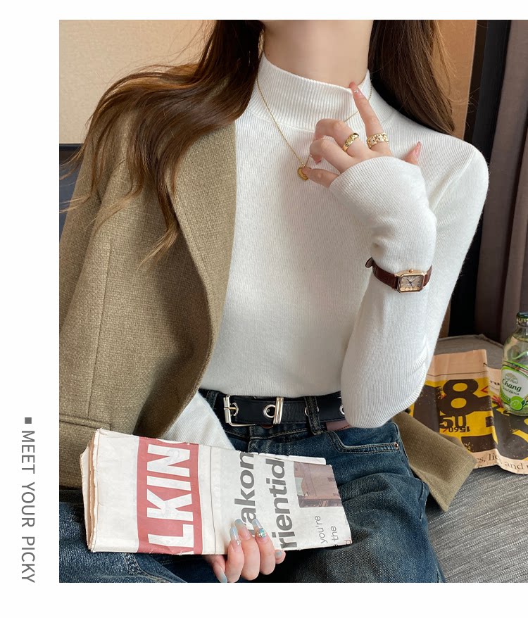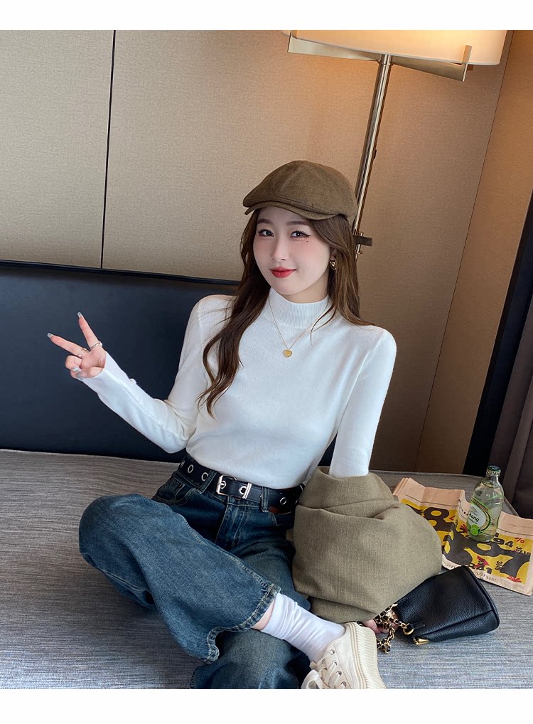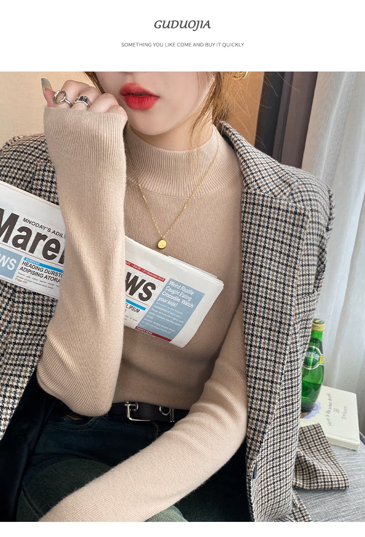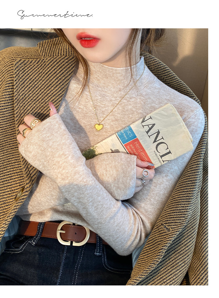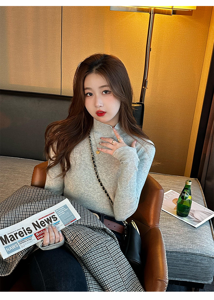 Трикотажный демисезонный базовый приятный телу шерстяной осенний свитер, высокий воротник, в стиле Шанель, 2026 года