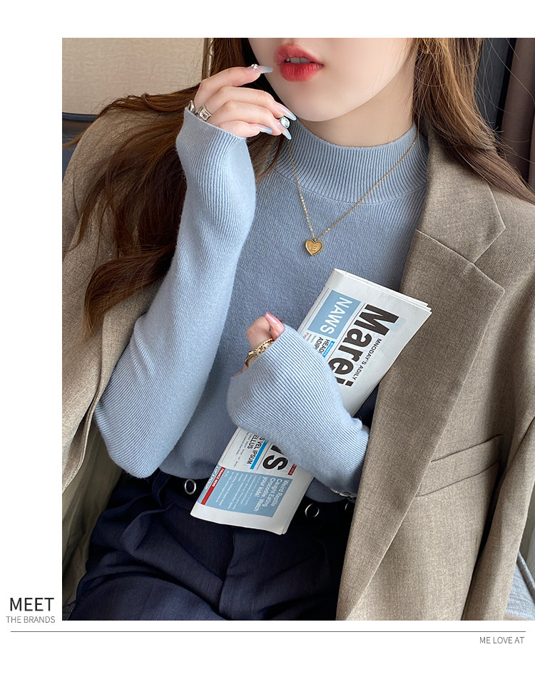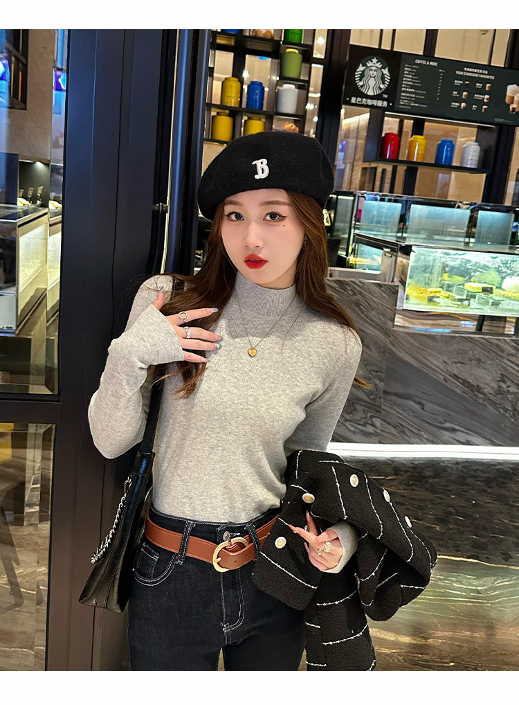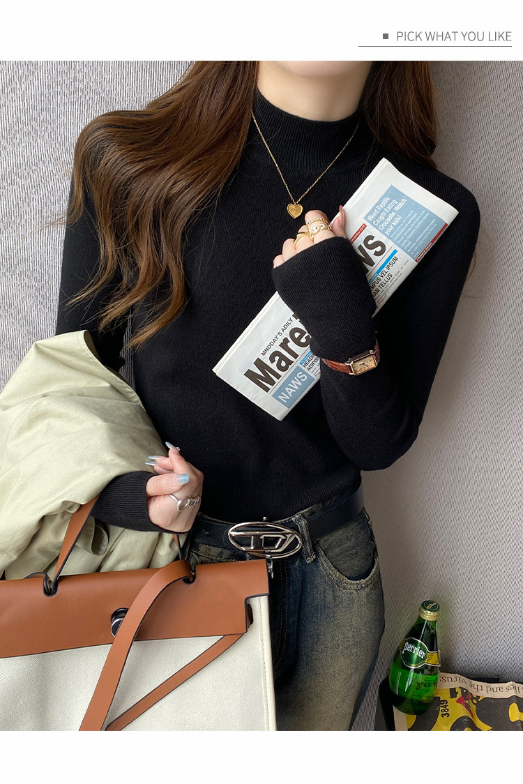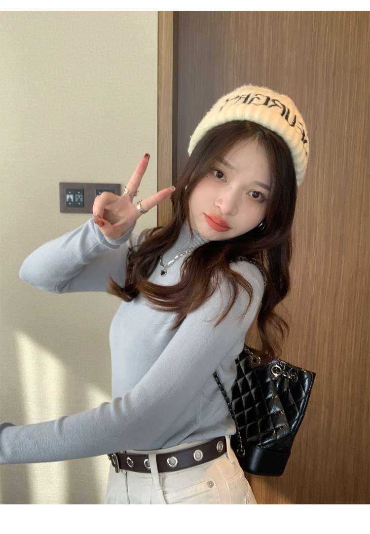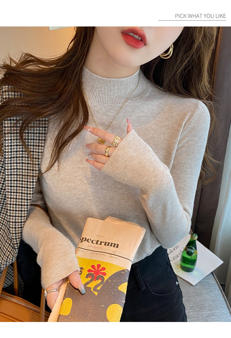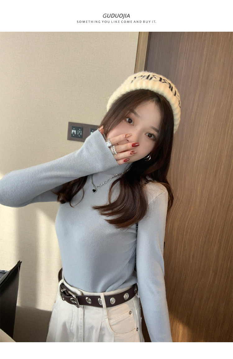 Трикотажный демисезонный базовый приятный телу шерстяной осенний свитер, высокий воротник, в стиле Шанель, 2026 года