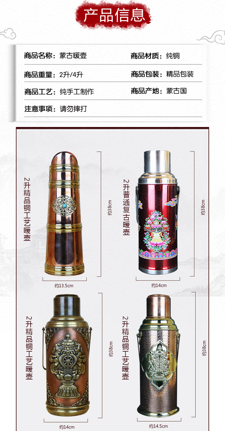 Медный ретро этнический термос, вместительный и большой заварочный чайник, этнический стиль