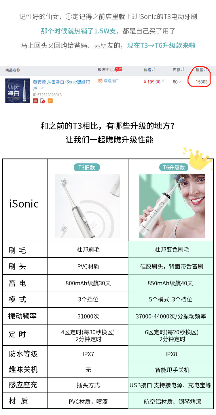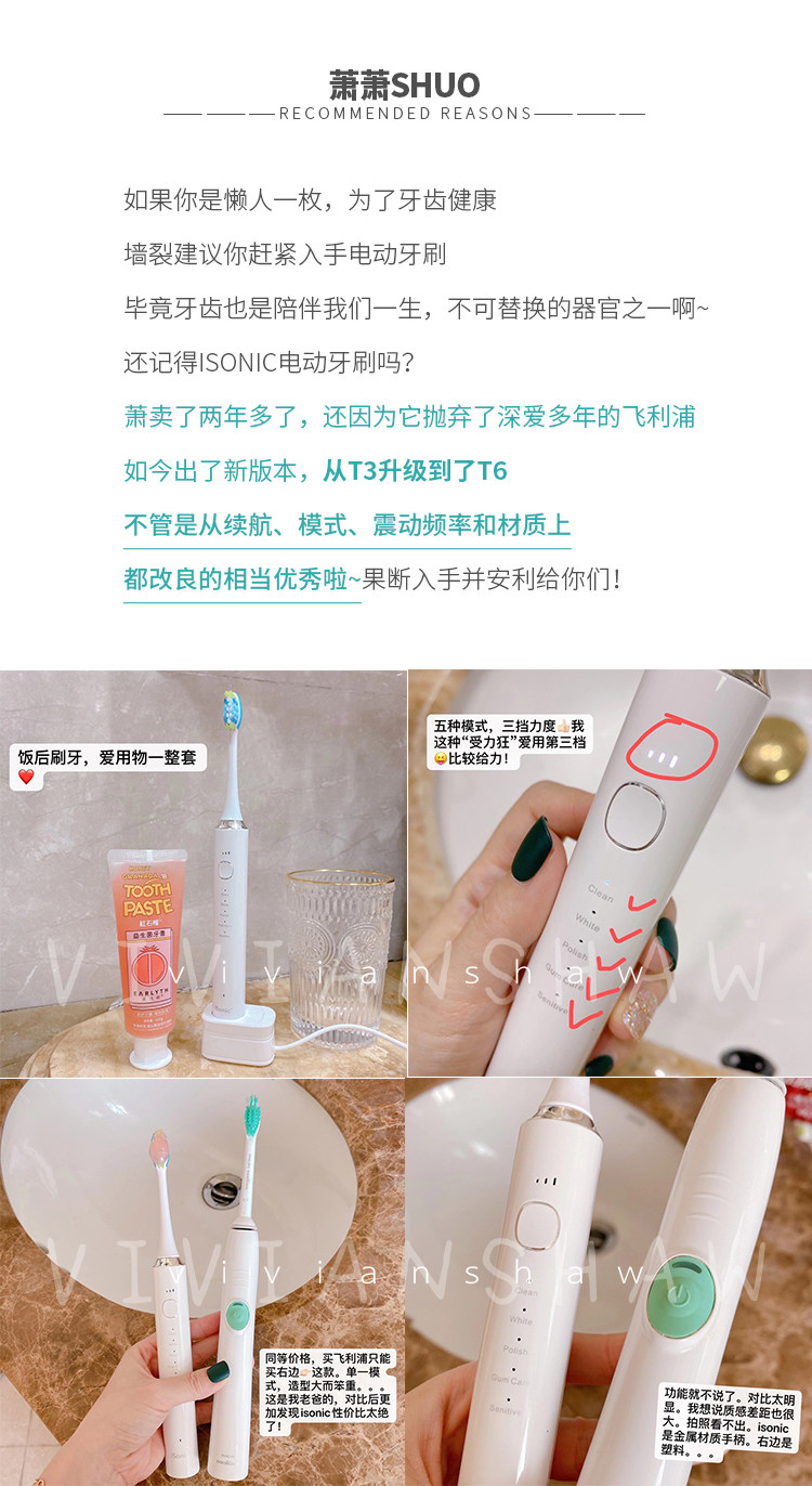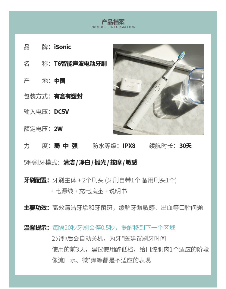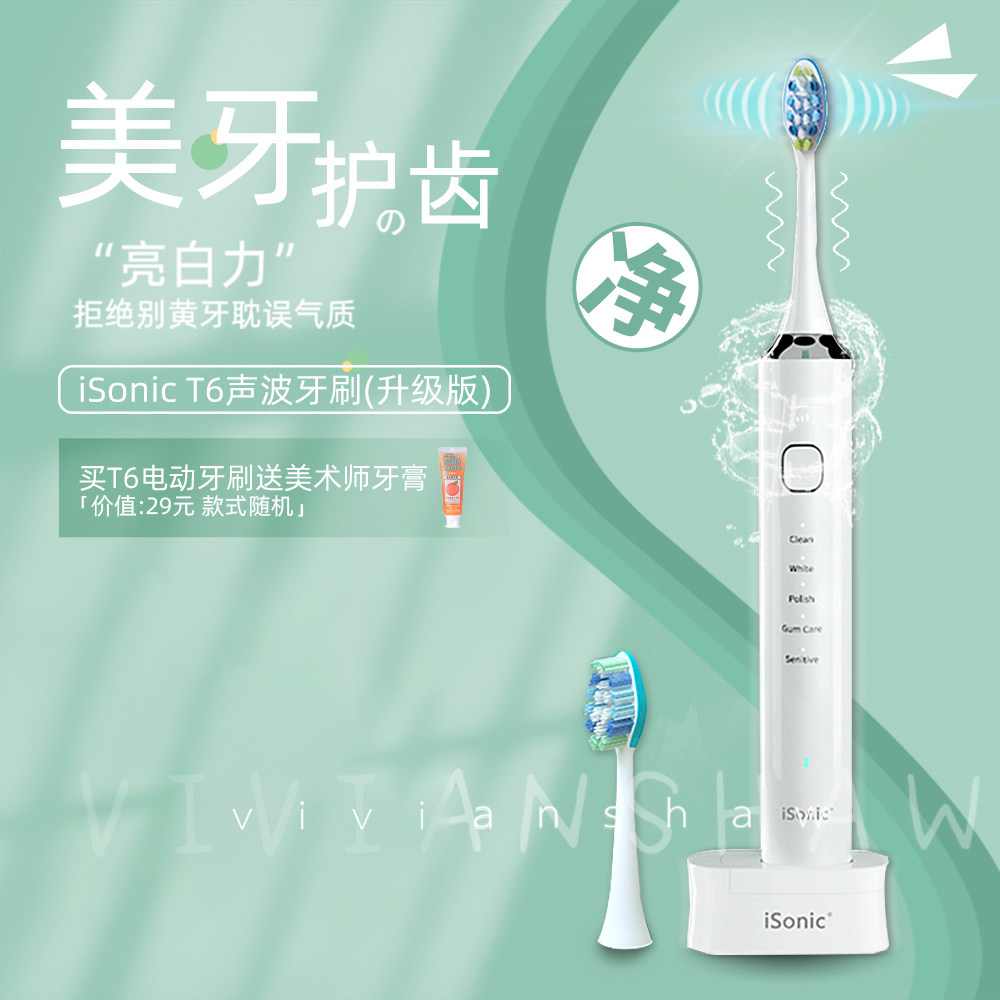 Новое обновление Isonic Intelly Sound Wave T6 Электрическая зубная щетка Призрачная интеллектуальная индукционная зарядка для взрослых мягких волос
