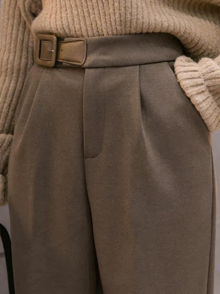 Хаки шерстяные демисезонные леггинсы, приталенные штаны, костюм, коллекция 2021, свободный прямой крой, высокая талия, увеличенная толщина