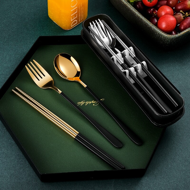 Палочки для еды, ложка, детский комплект, портативная вилка, коробка для хранения для школьников и студентов, посуда