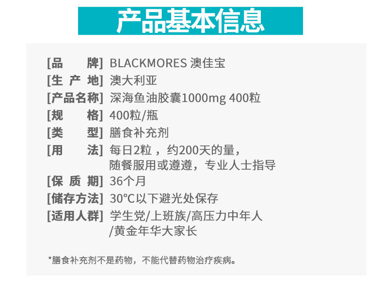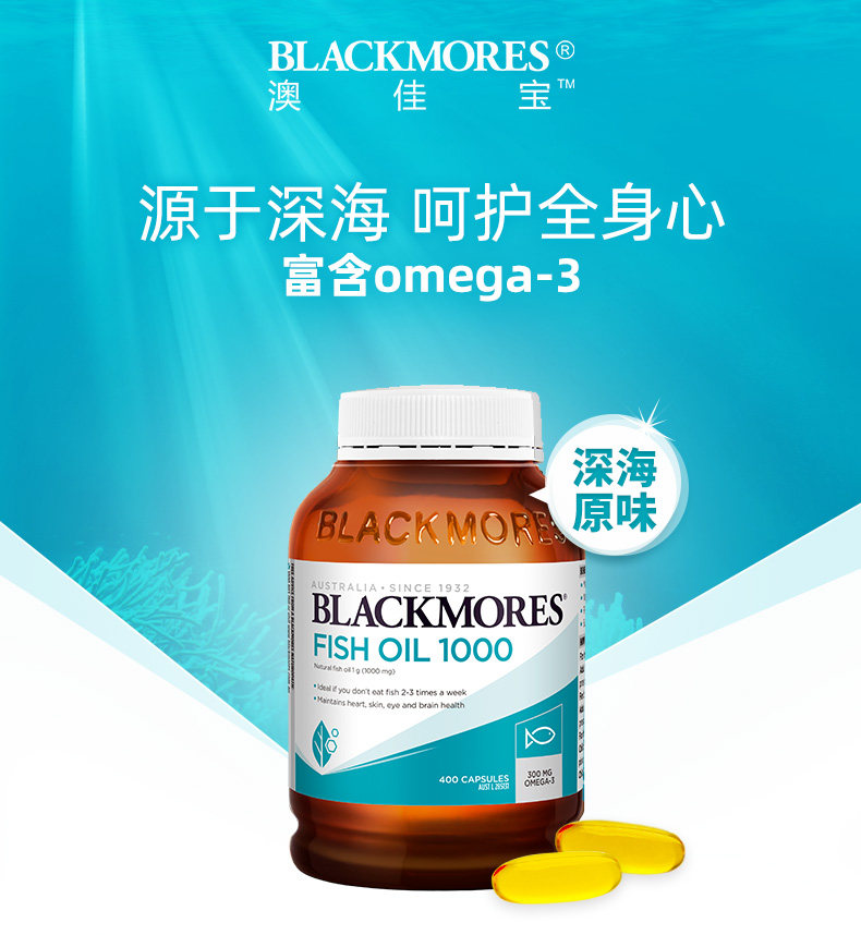 Blackmores Aojiabao Оригинальные глубоководные рыбий жиры мягкие капсулы 400 капсулы 3 уход за средним и пожилым здоровьем