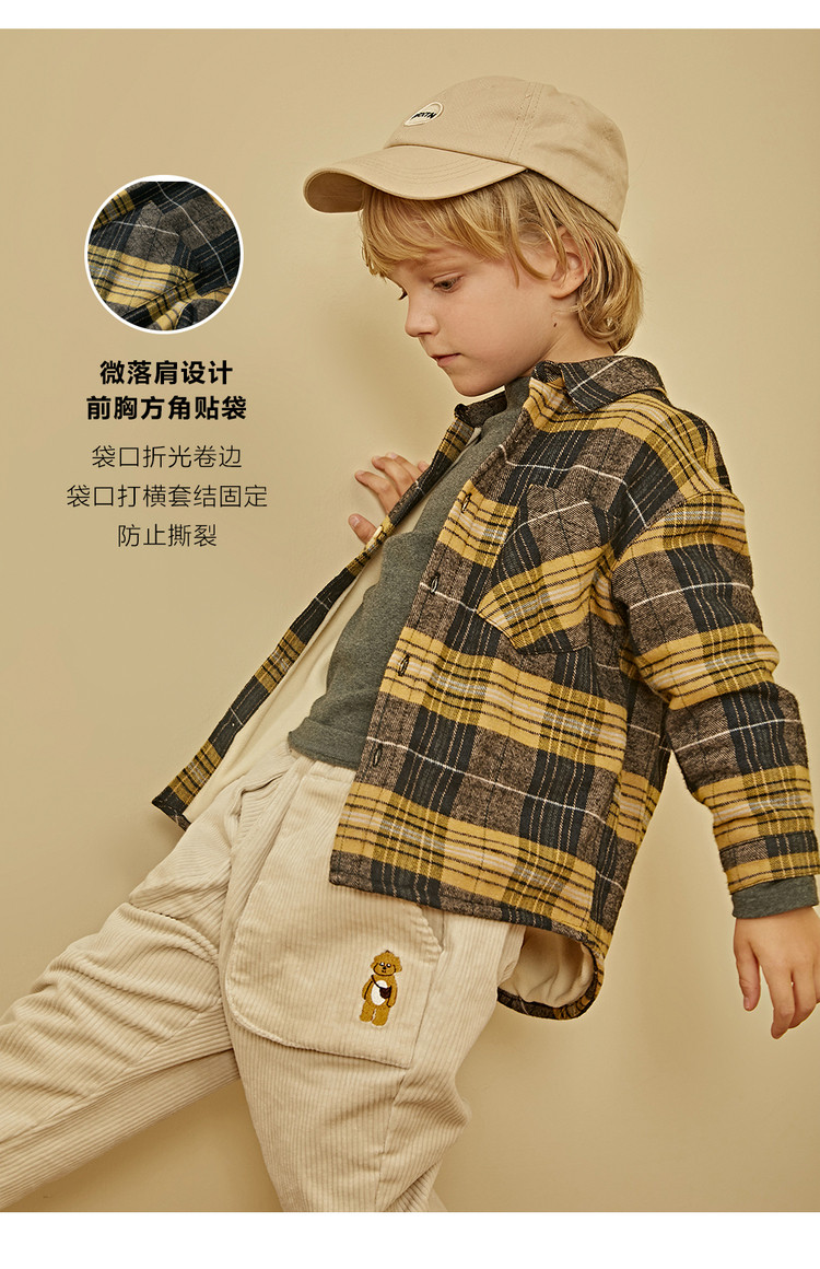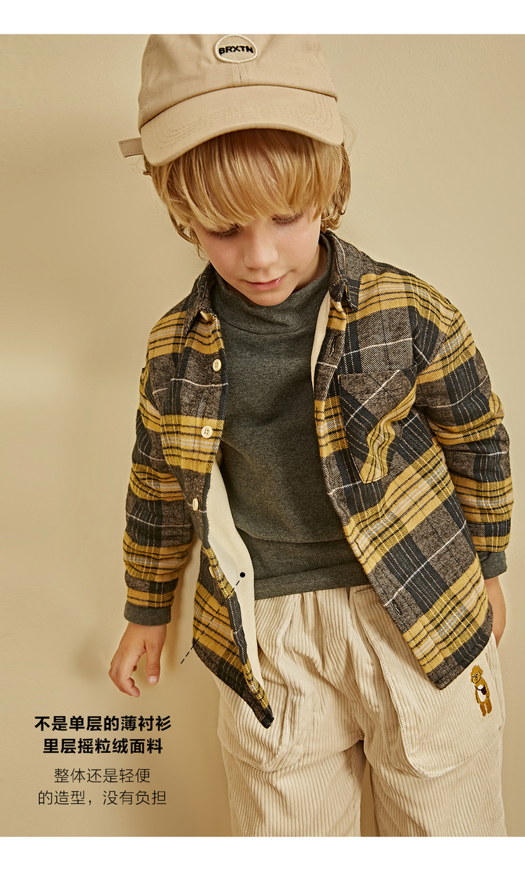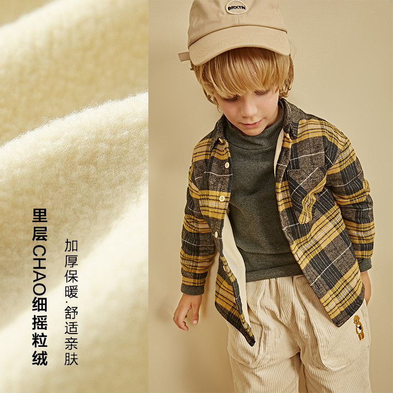 棉叔叔 Детская бархатная утепленная демисезонная рубашка для мальчиков
