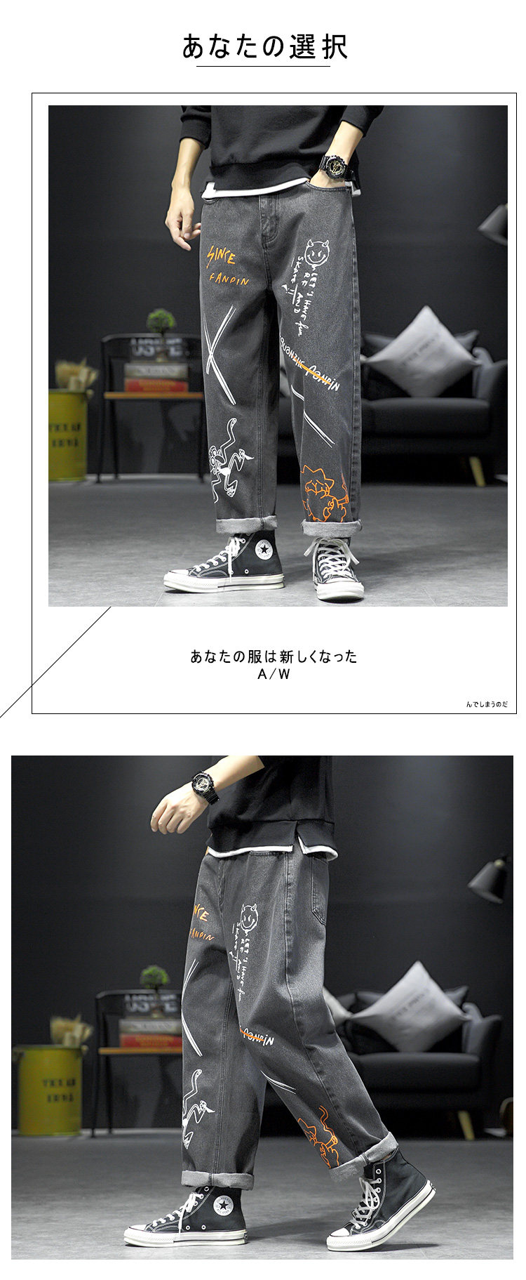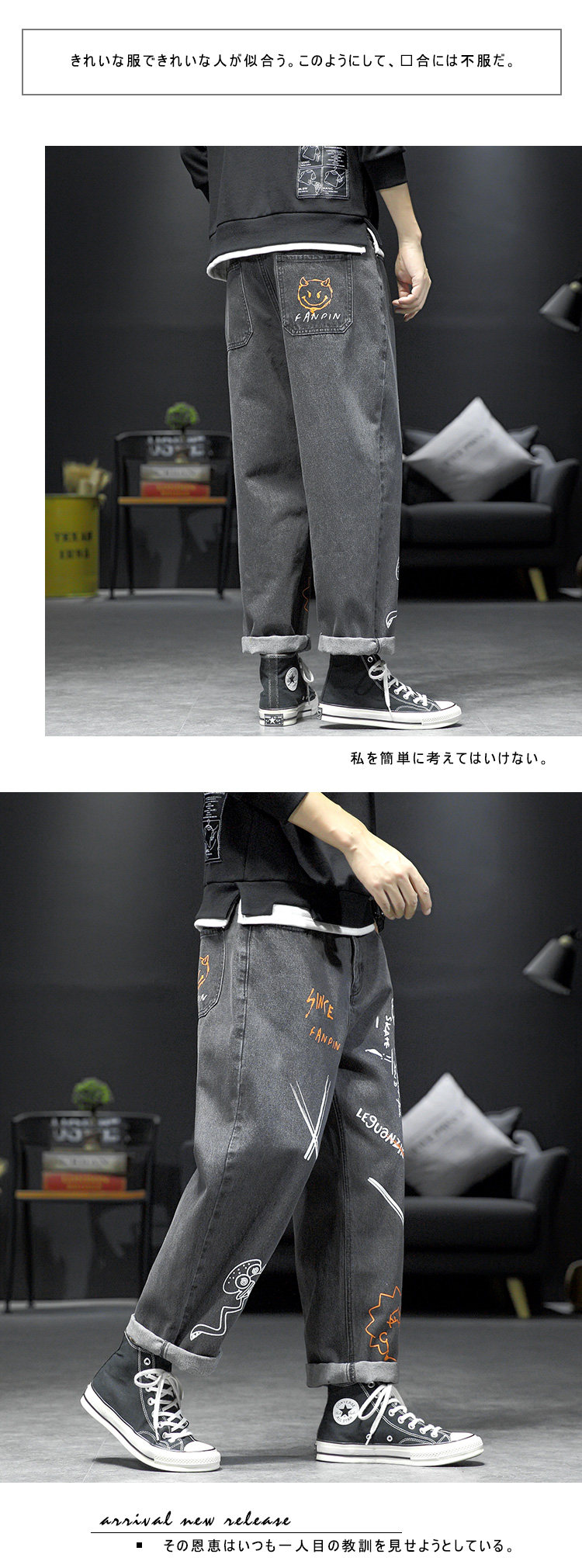 Японские прямые свободные джинсы, повседневные брюки, демисезонные универсальные штаны, большой размер
