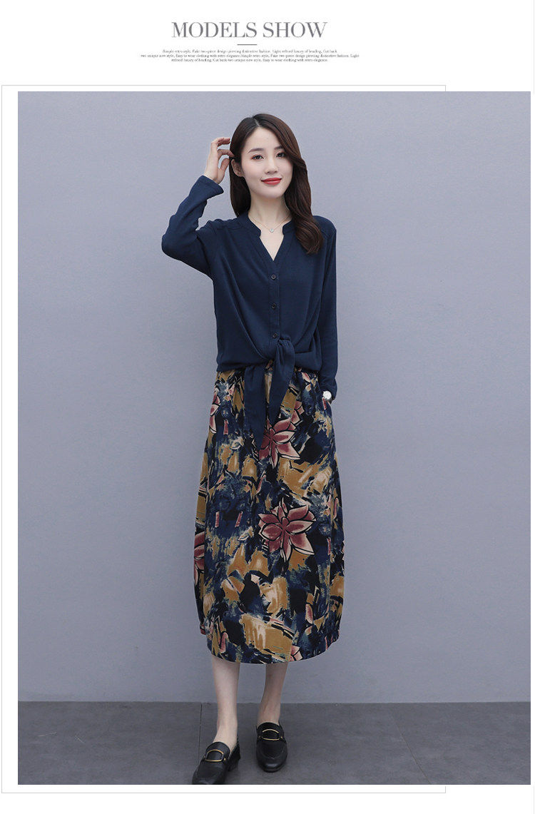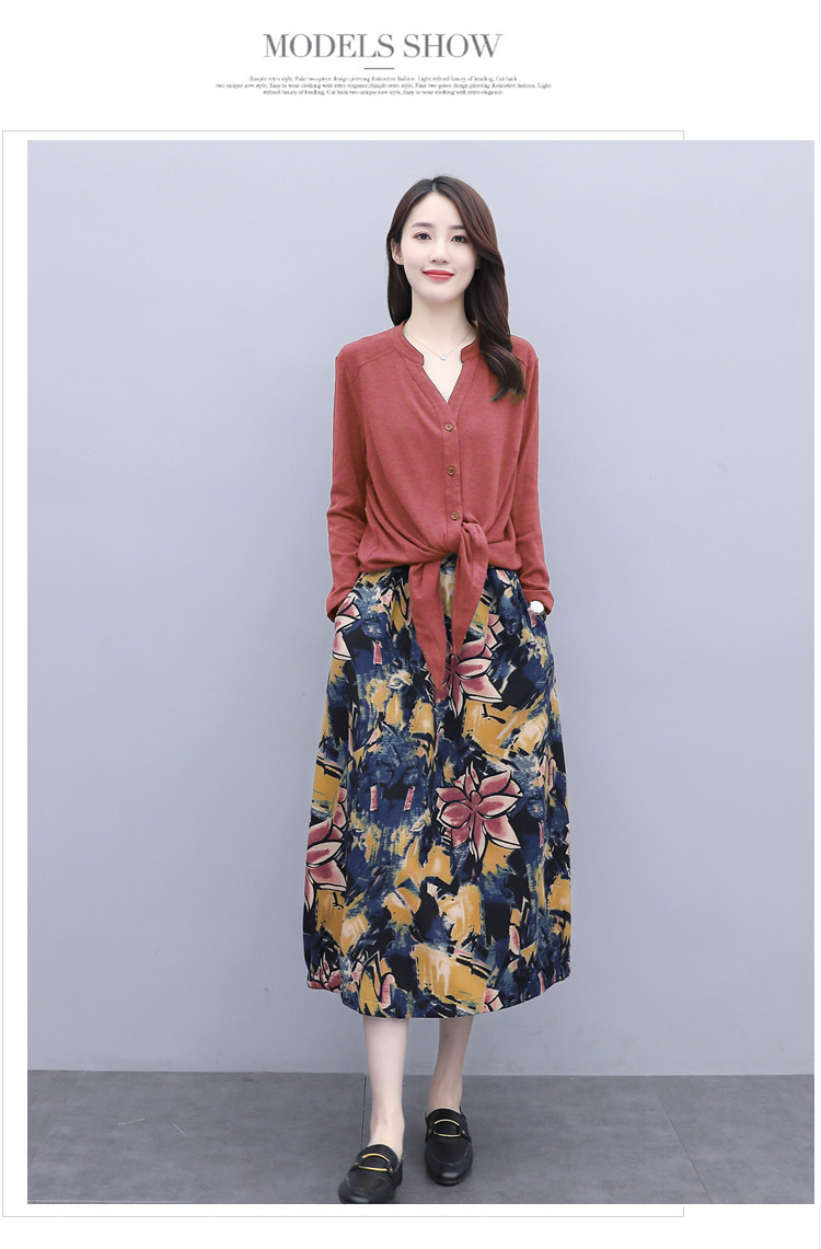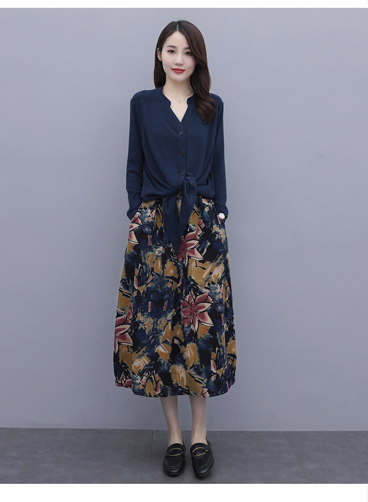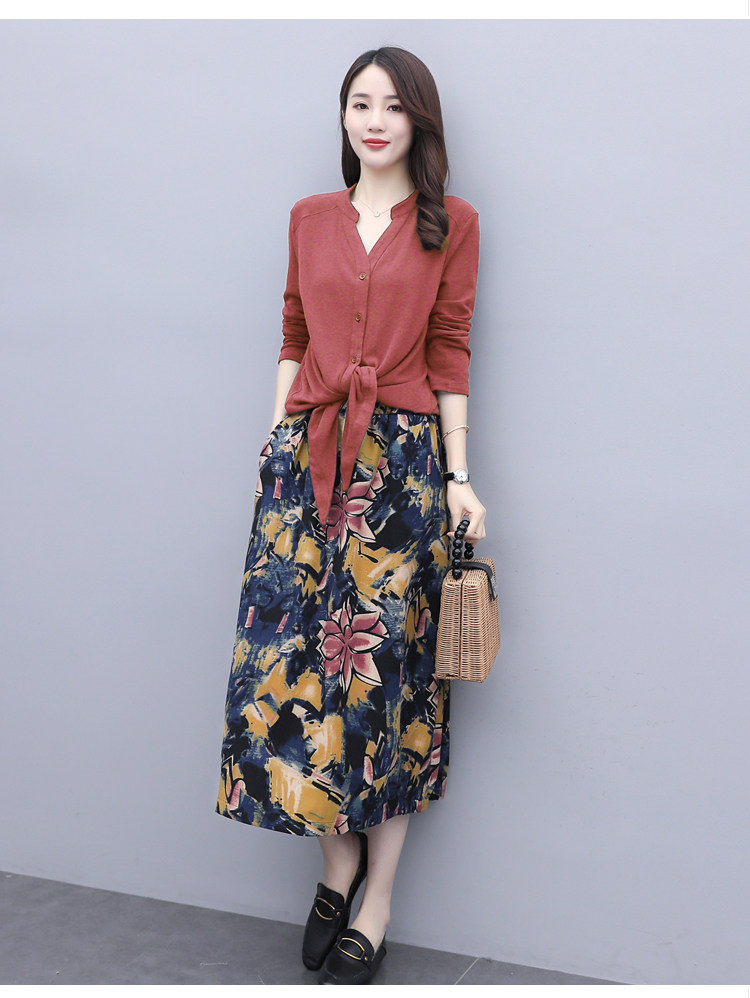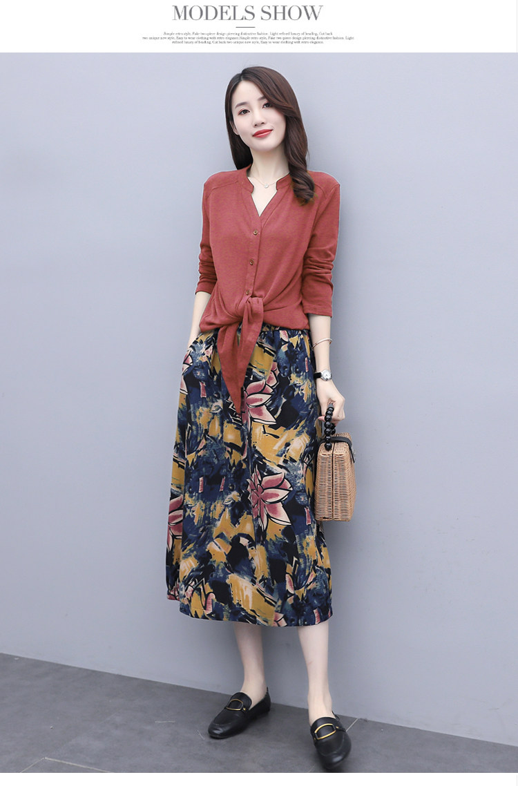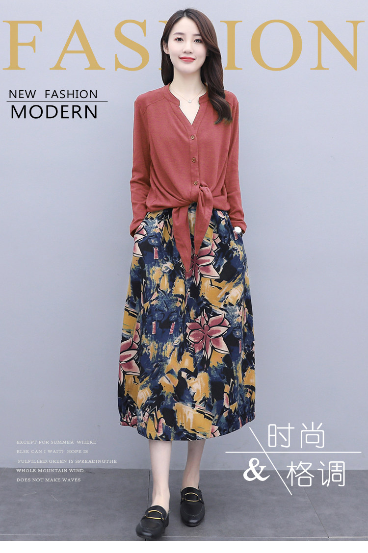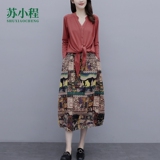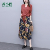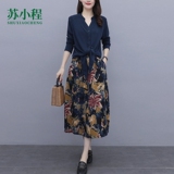Осеннее платье, модный комплект, юбка, в цветочек, 2020 года, городской стиль, в западном стиле, из хлопка и льна