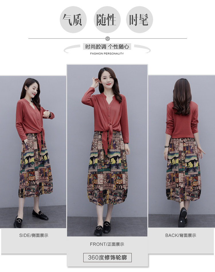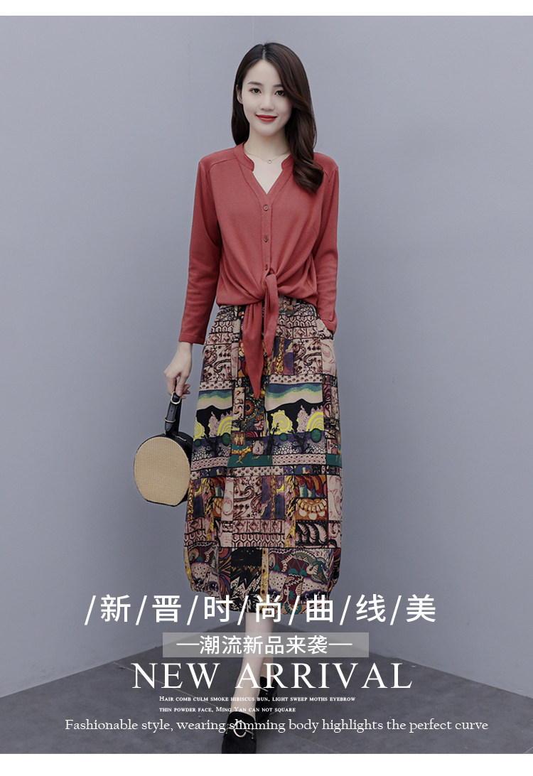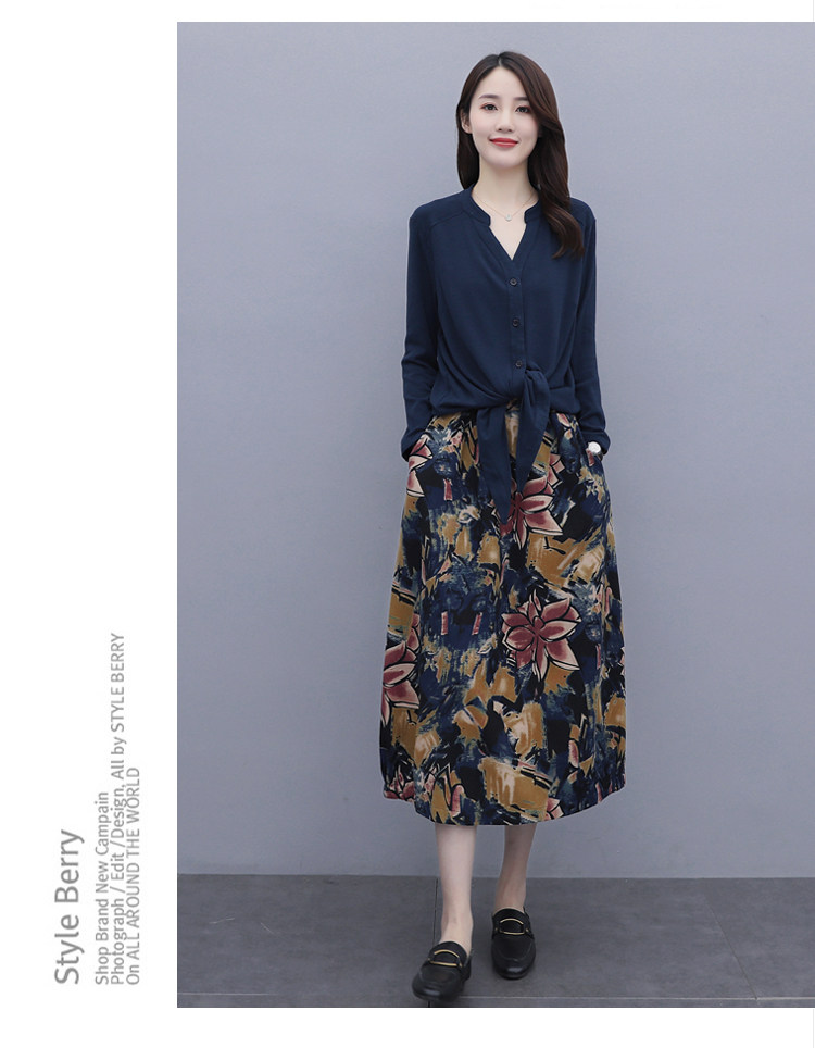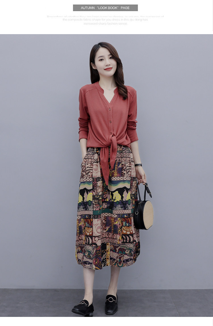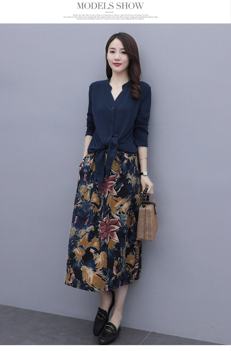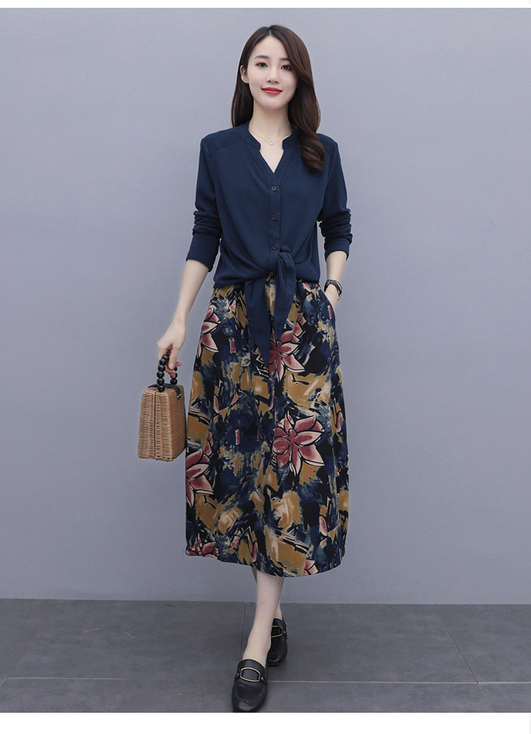Осеннее платье, модный комплект, юбка, в цветочек, 2020 года, городской стиль, в западном стиле, из хлопка и льна