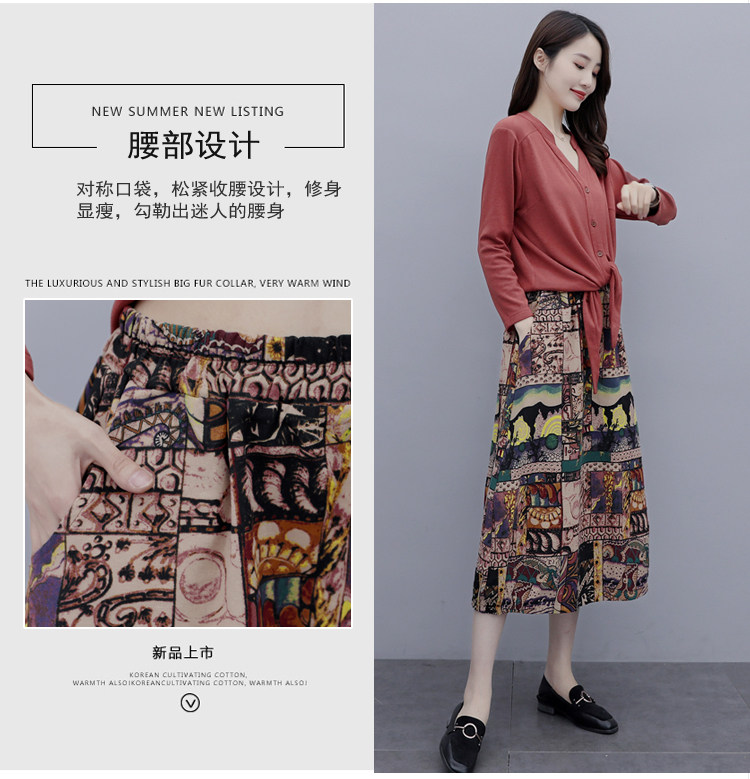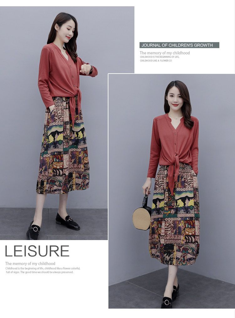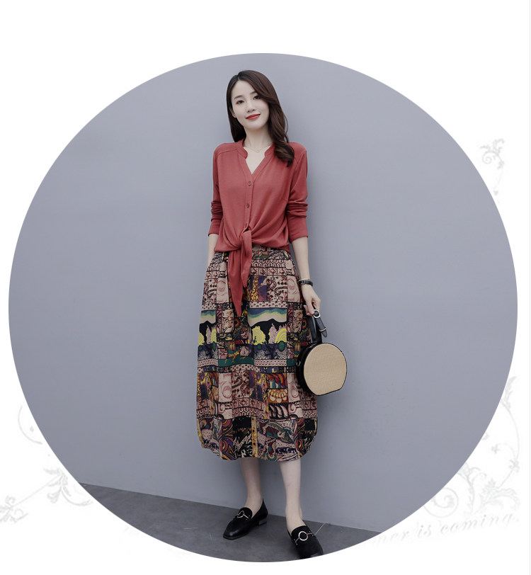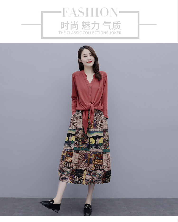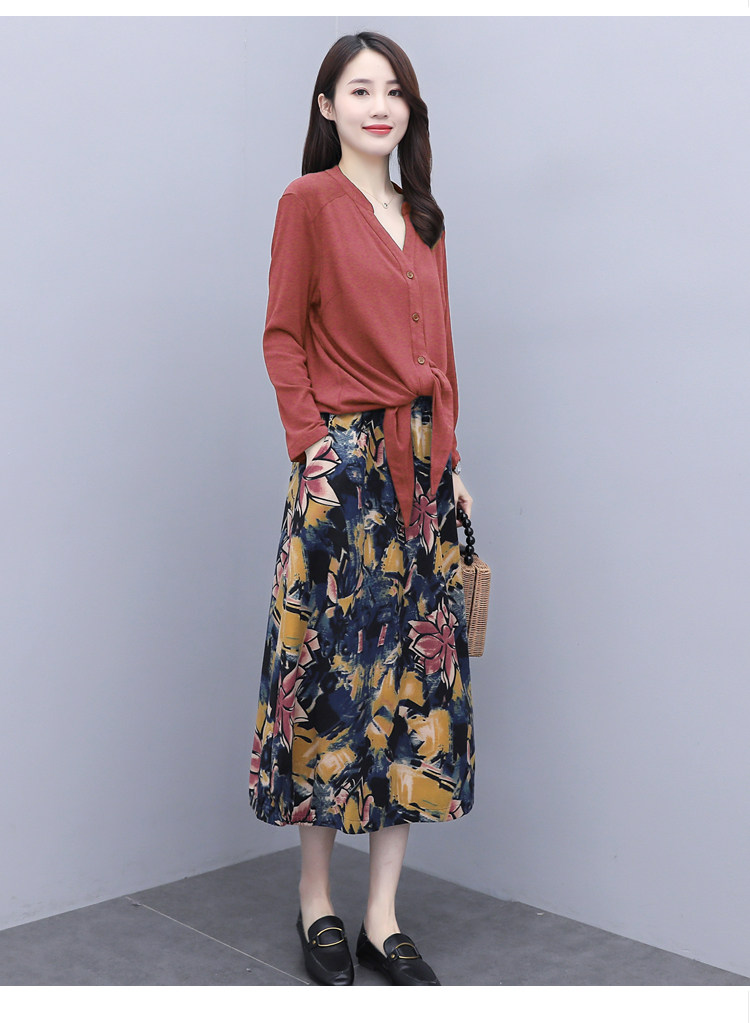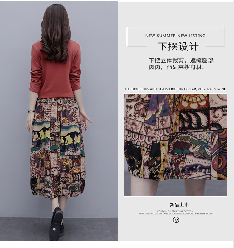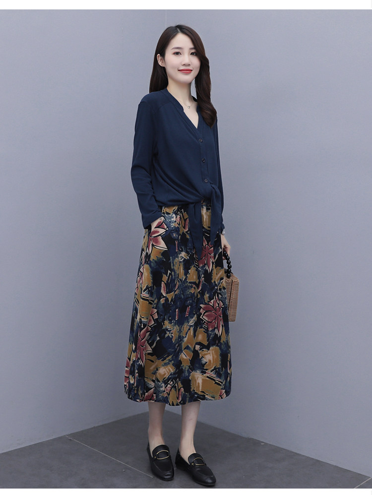 Осеннее платье, модный комплект, юбка, в цветочек, 2020 года, городской стиль, в западном стиле, из хлопка и льна