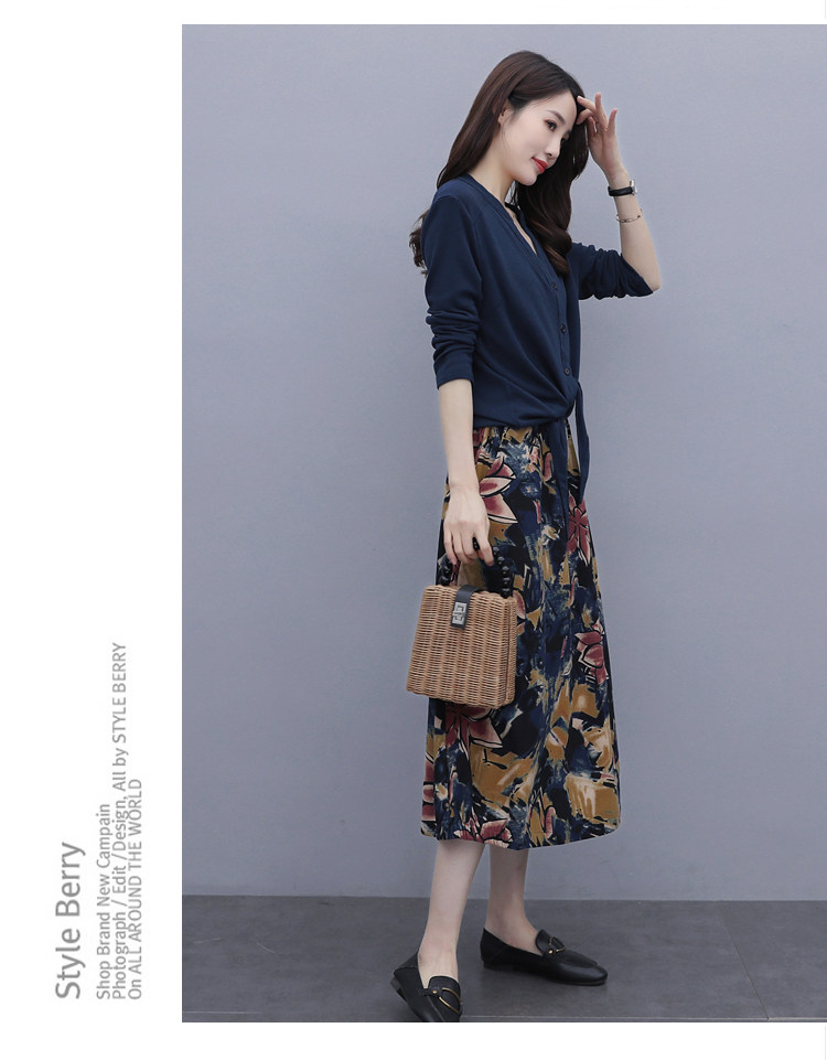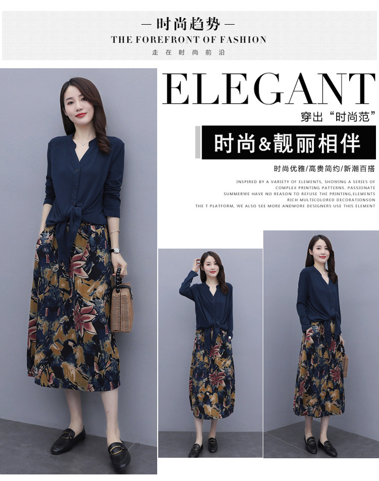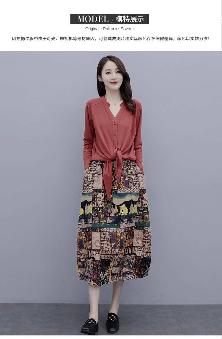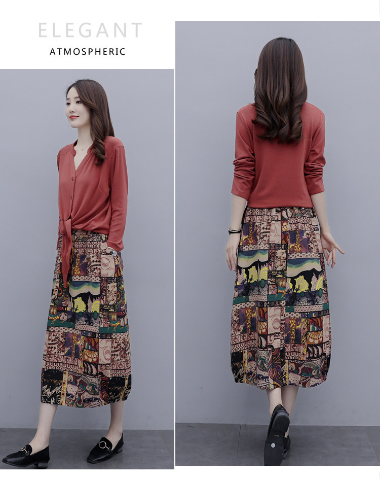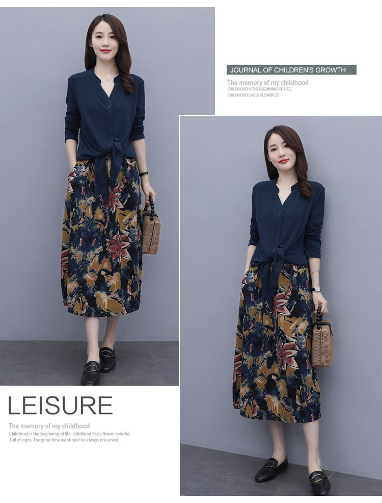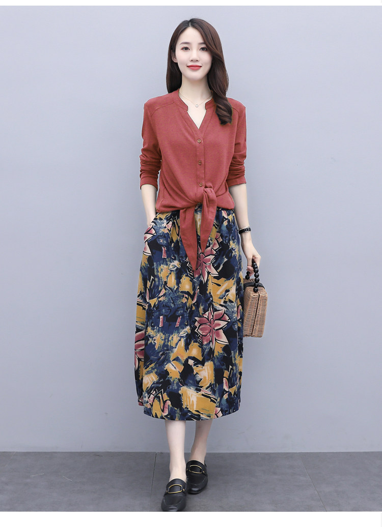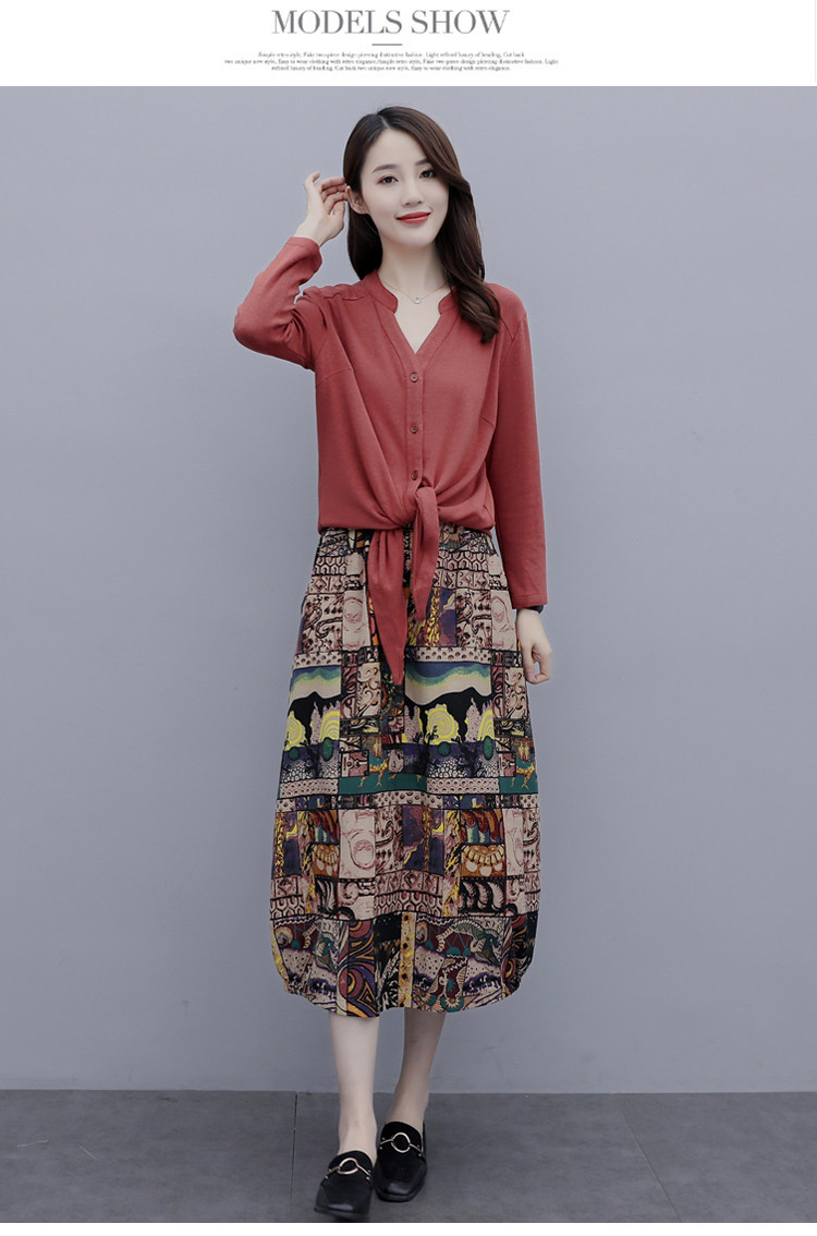 Осеннее платье, модный комплект, юбка, в цветочек, 2020 года, городской стиль, в западном стиле, из хлопка и льна