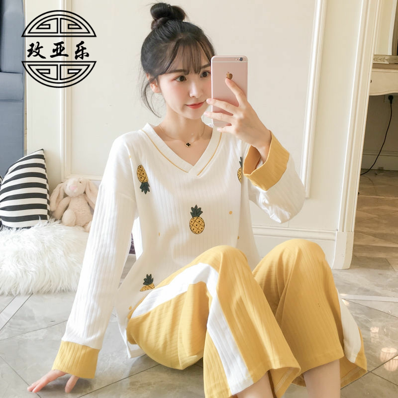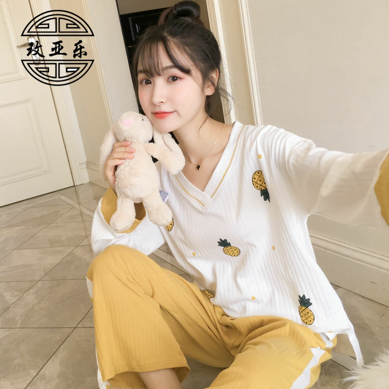 Осенняя пижама, лонгслив, нарукавники, милый осенний комплект для школьников, в корейском стиле, свободный крой