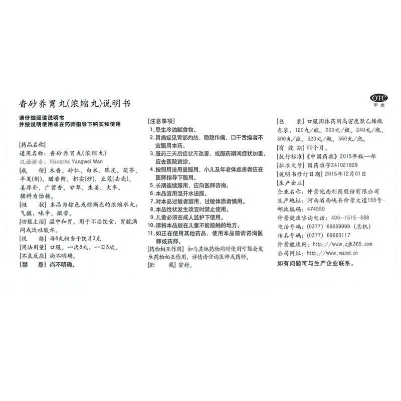 仲景 Сянша Янбан 360 Таблетки теплые нейтральные и рвотные из -за того, что кислое аппетит потерей воды питает желудок и защиту желудка китайской кондиционирование медицины