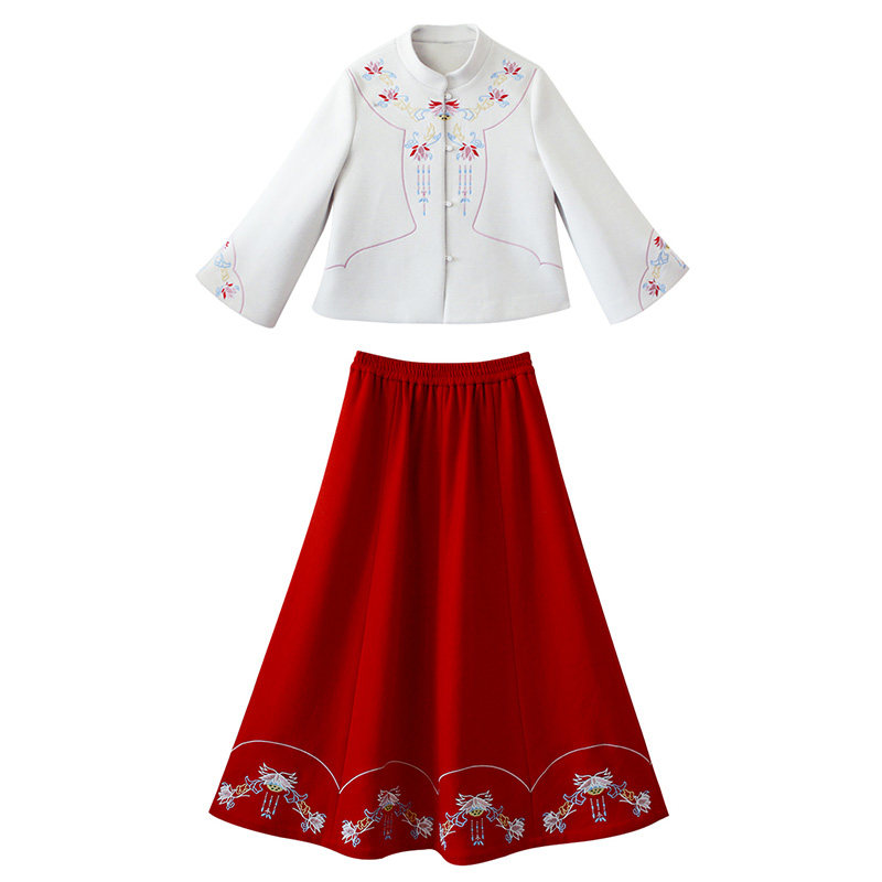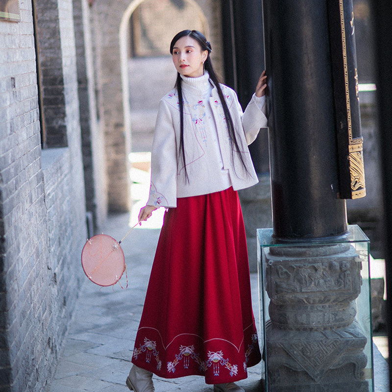 Шерстяное пальто, короткая куртка, зимняя красная юбка, комплект, коллекция 2021