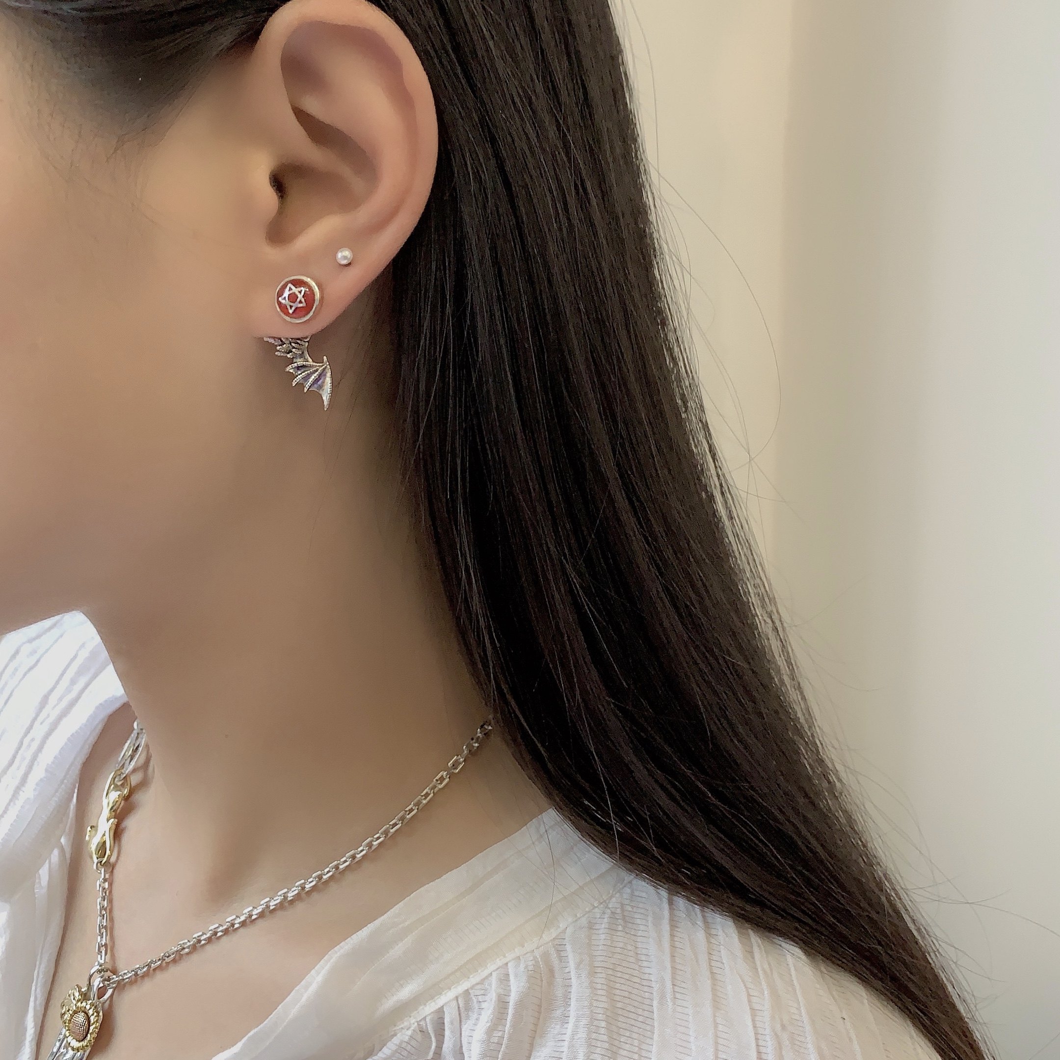 Вода Лили Шенгши 925 Серьмы стерлингового серебряного серебра ретро -нишевые крестики с серьгами по личности поперечного элемента.