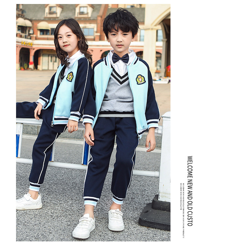 Форма для школьников, осенний утепленный комплект, спортивный детский синий спортивный костюм для детского сада