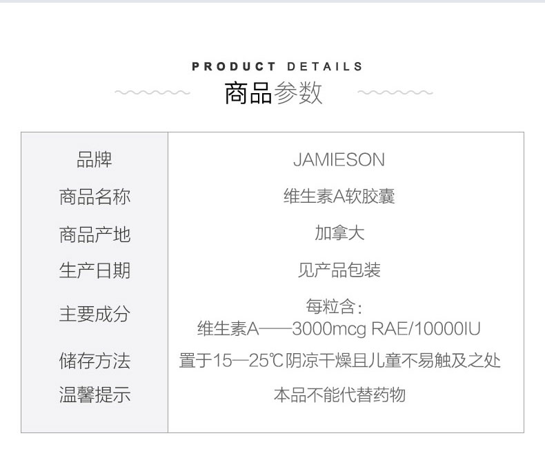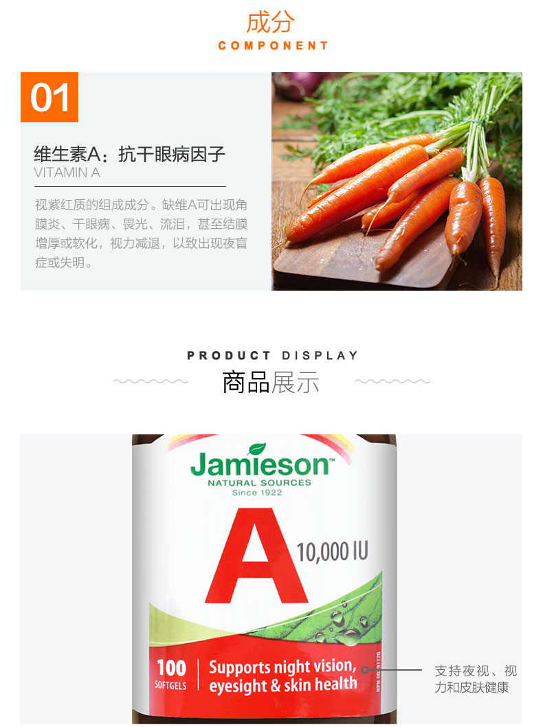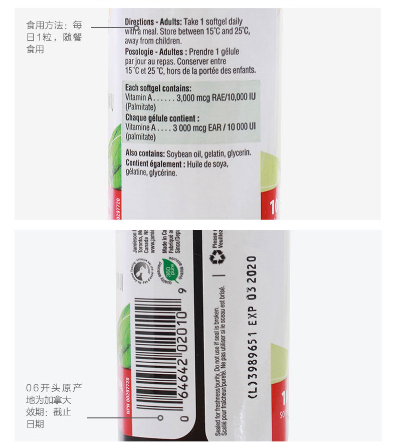 Jamieson Boybuilding Vitamin A Капсула некаротин витамин A100 Защита для взрослых*2 бутылка