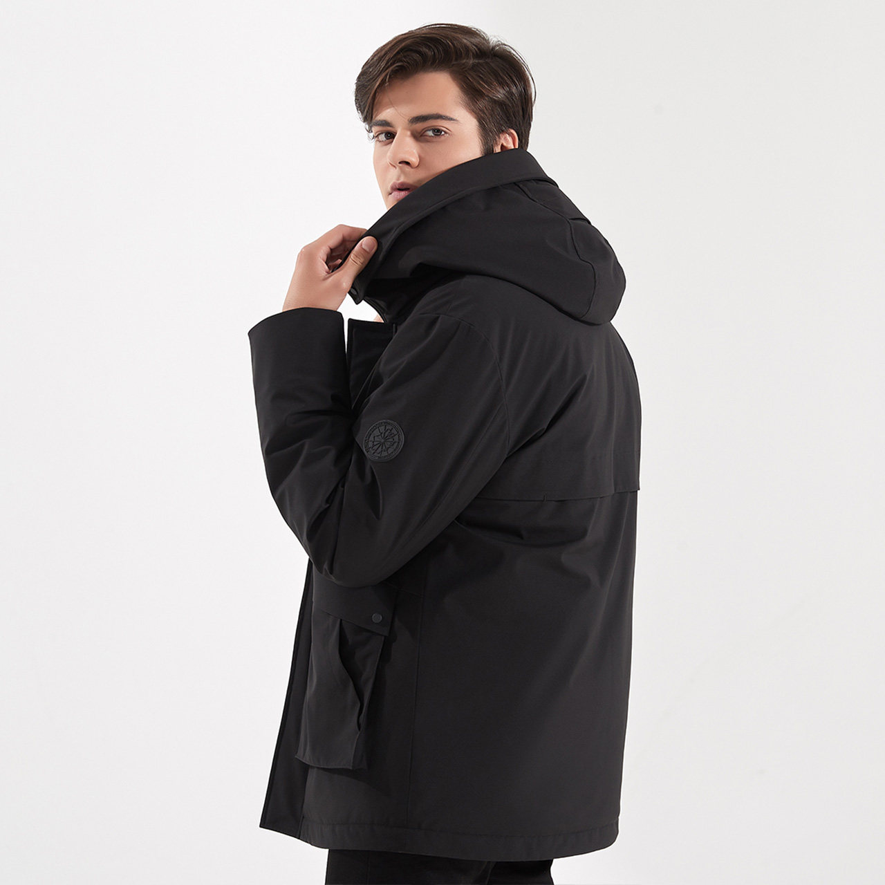 Удерживающий тепло комфортный ветрозащитный пуховик для отдыха с карманами с капюшоном, бархатная куртка, коллекция 2021, гусиный пух