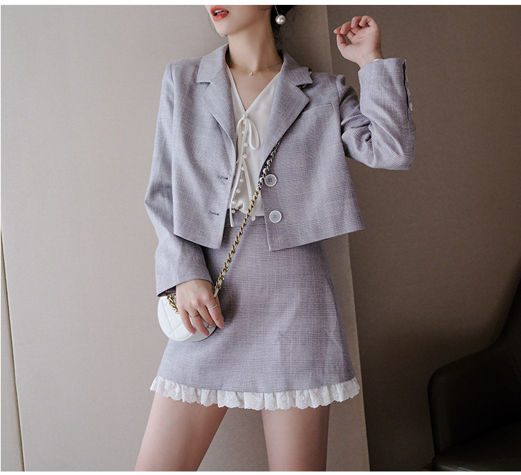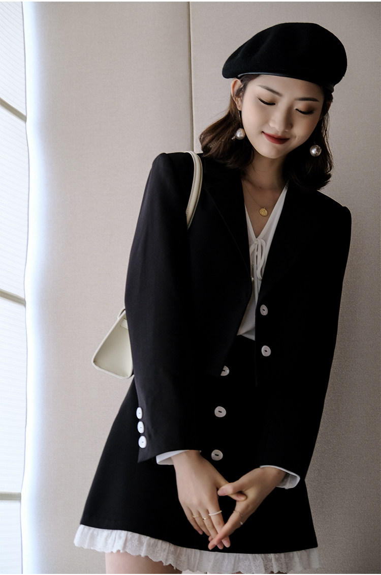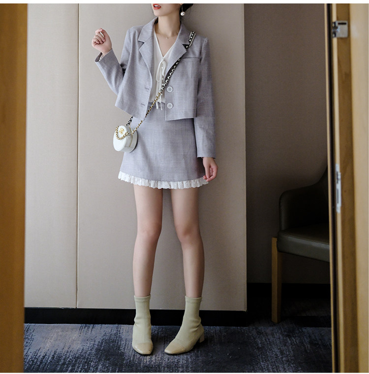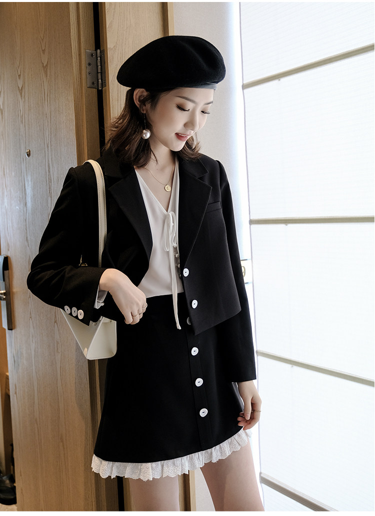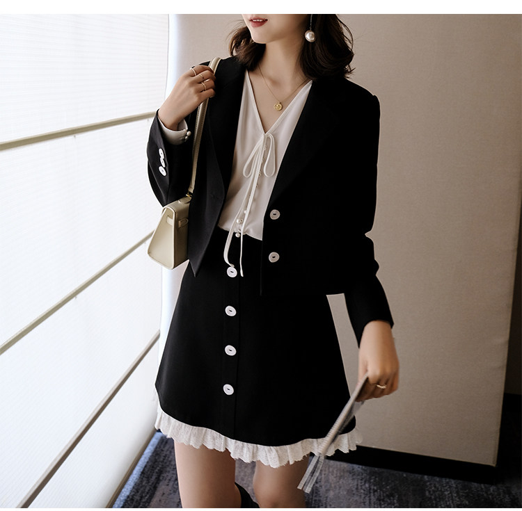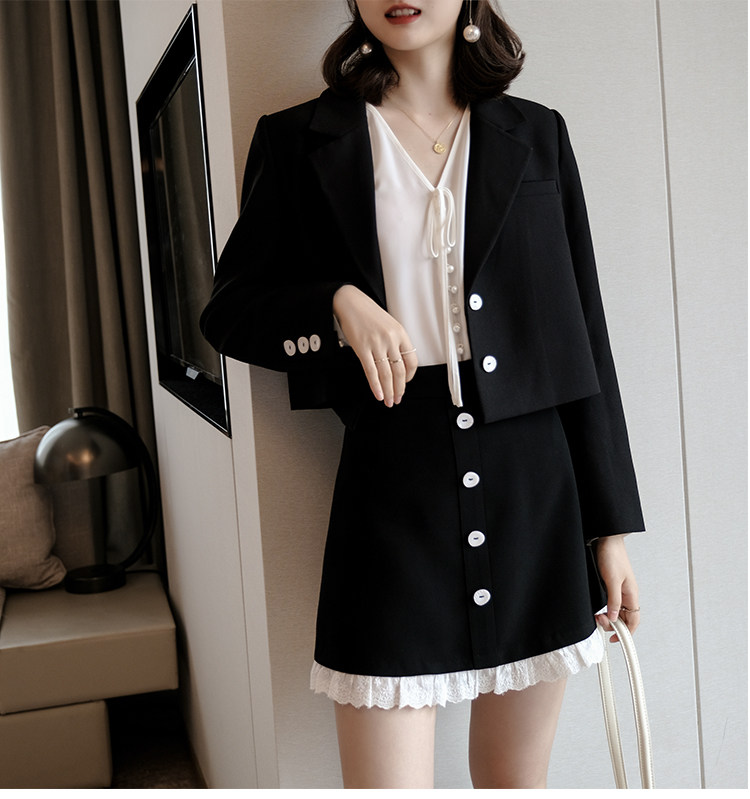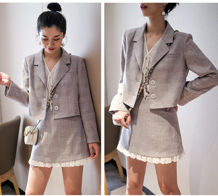 Костюм маленький пиджак+кружевная строчка маленькая юбка Два -байт T -Peece t