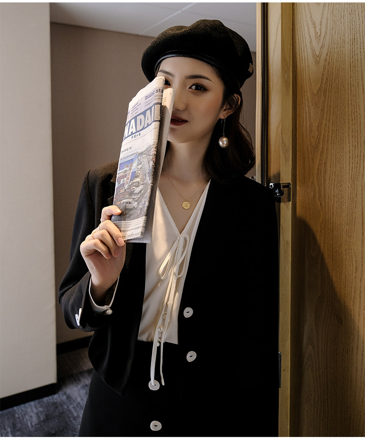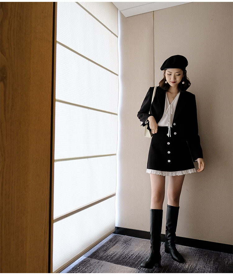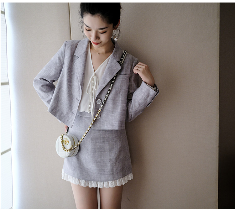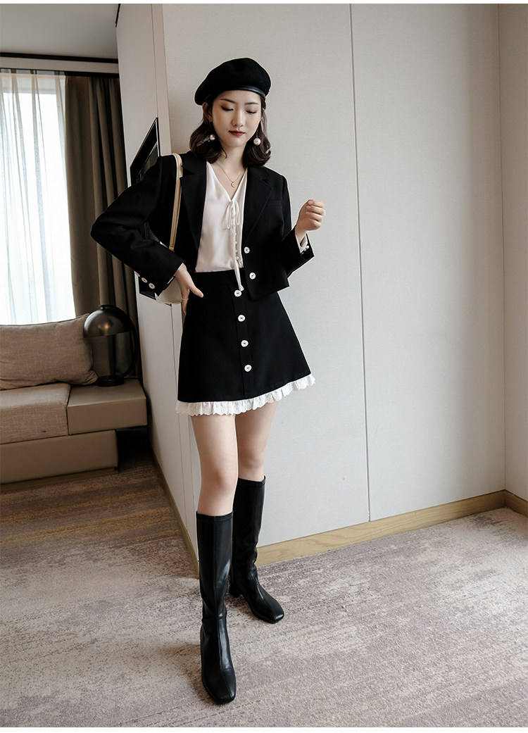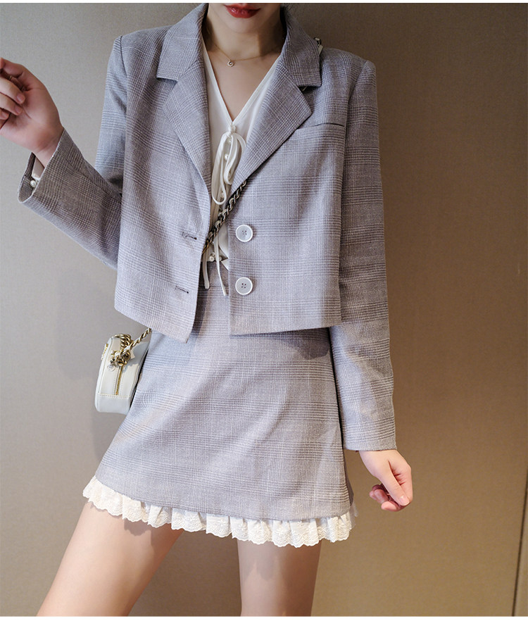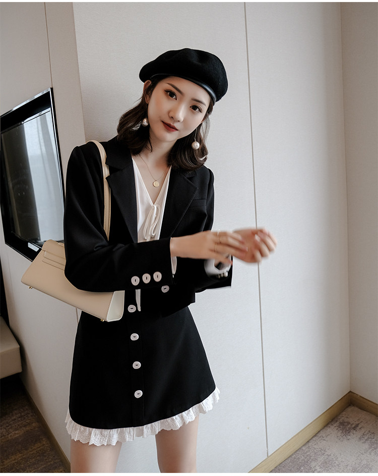 Костюм маленький пиджак+кружевная строчка маленькая юбка Два -байт T -Peece t