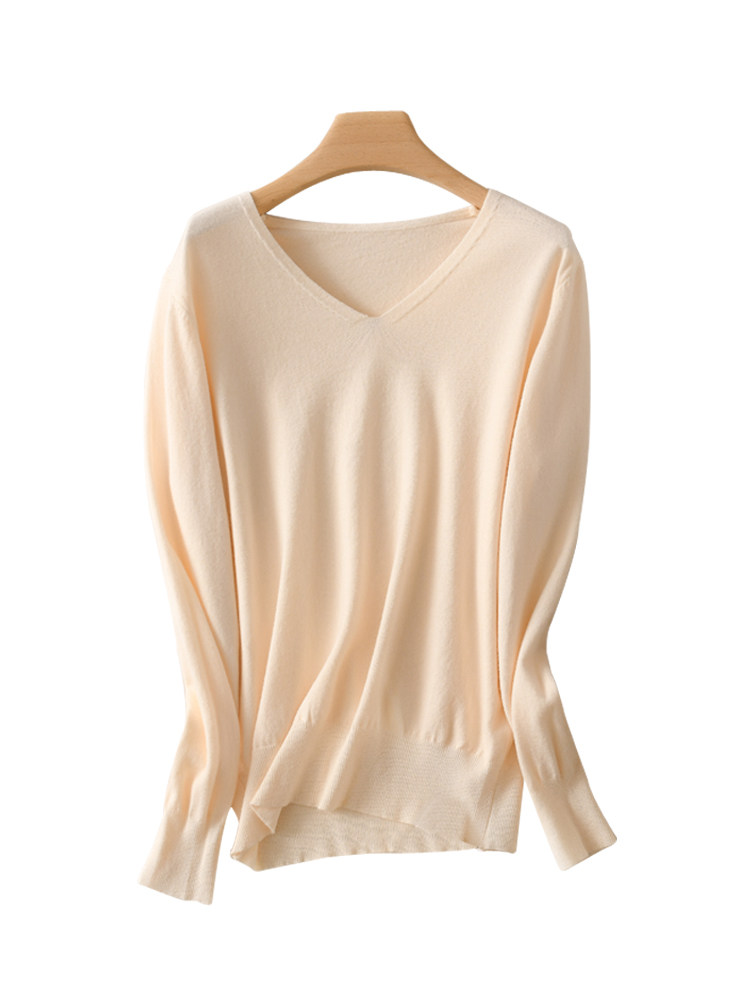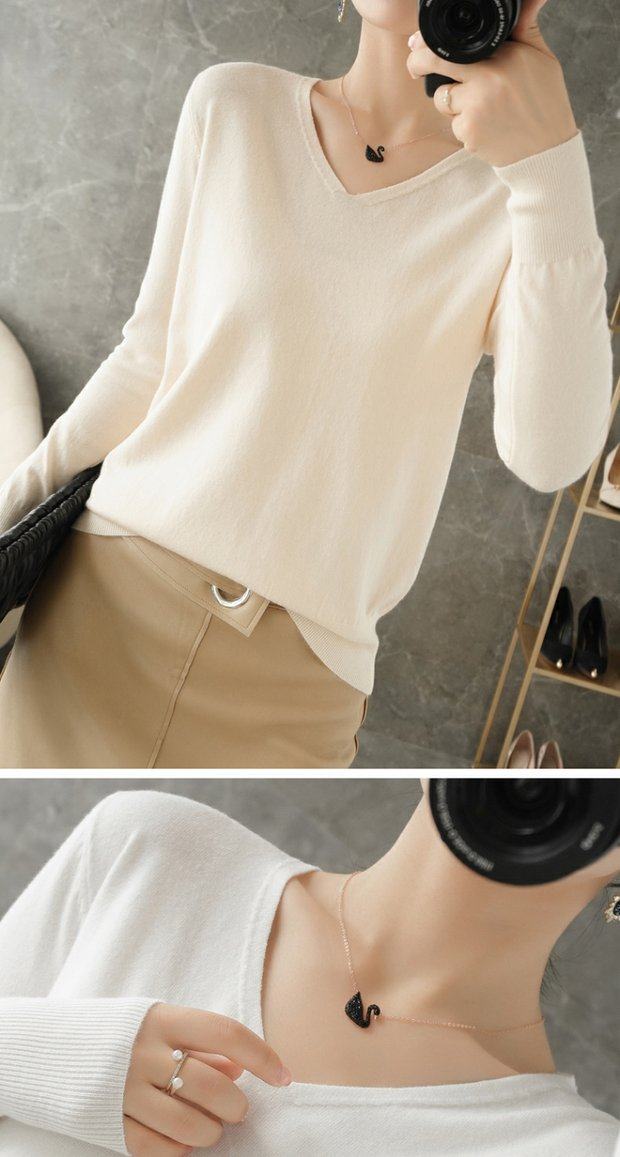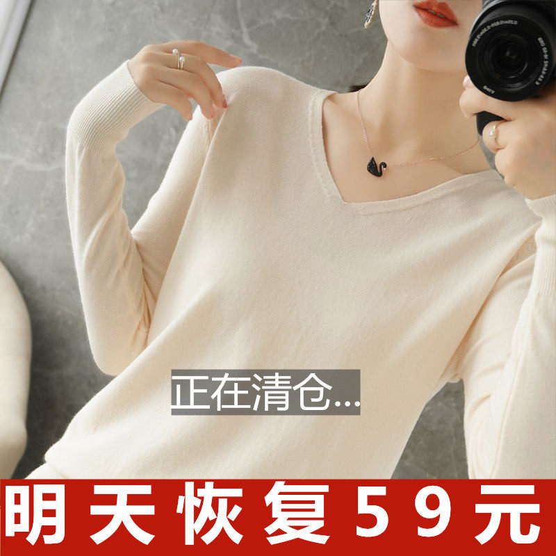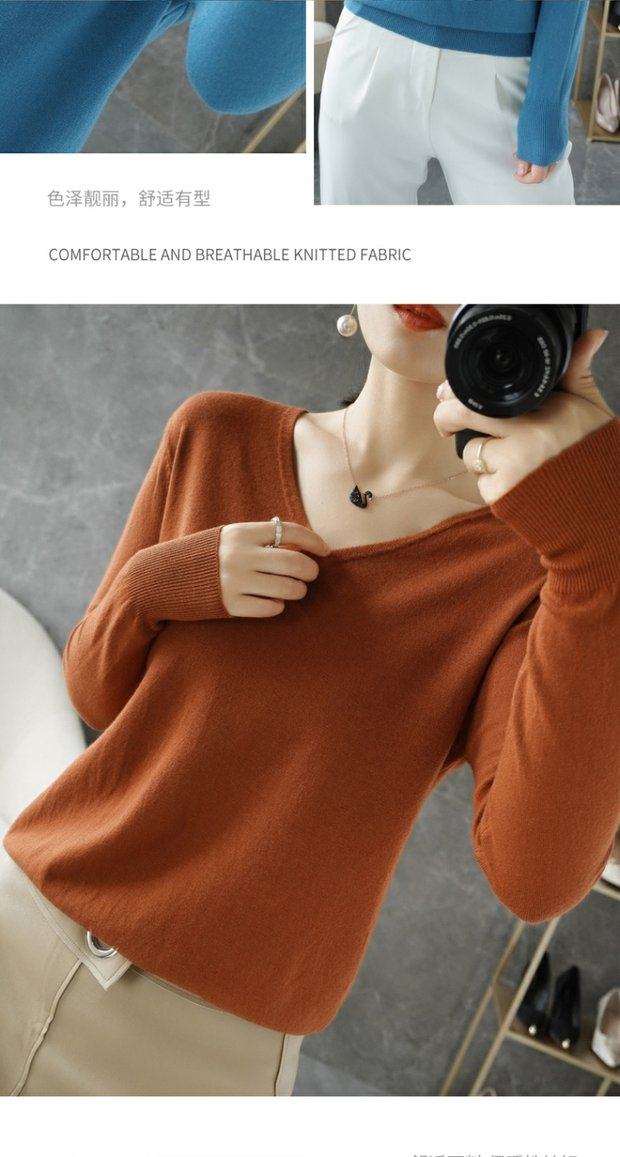 Осенний шерстяной демисезонный свитер, трикотажная кашемировая рубашка с круглым воротником, V-образный вырез, большой размер