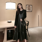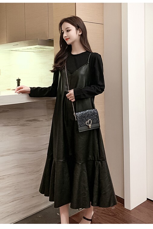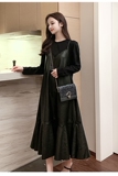 Весеннее полиуретановое платье, длинная юбка, большой размер, в западном стиле, коллекция 2021, по фигуре