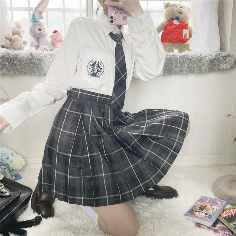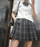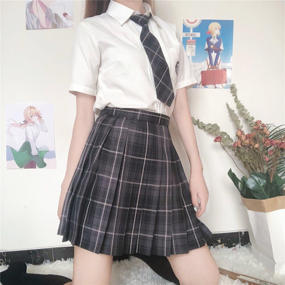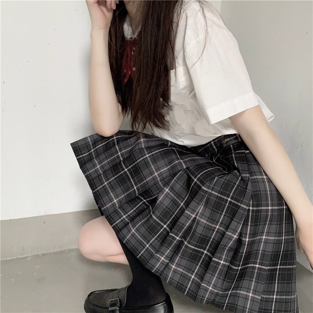 Японская студенческая юбка в складку для школьников и студентов, галстук-бабочка, (в наличии на складе), высокая талия